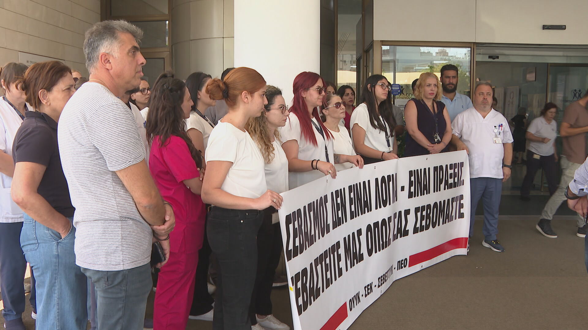 Προειδοποιητική στάση εργασίας, διάρκειας μιας ώρας, από τις 10.00 μέχρι τις 11.00, πραγματοποίησαν το πρωί της Παρασκευής οι εργαζόμενοι στο Ογκολογικό Κέντρο Τράπεζας Κύπρου, στην Λευκωσία, μέλη των συντεχνιών ΟΥΥΚ-ΣΕΚ και ΣΕΒΕΤΤΥΚ-ΠΕΟ, ζητώντας διαδικασίες διαφάνειας και την επαναπρόσληψη εργαζόμενης που, όπως υποστηρίζουν, αδίκως έχει απολυθεί.
