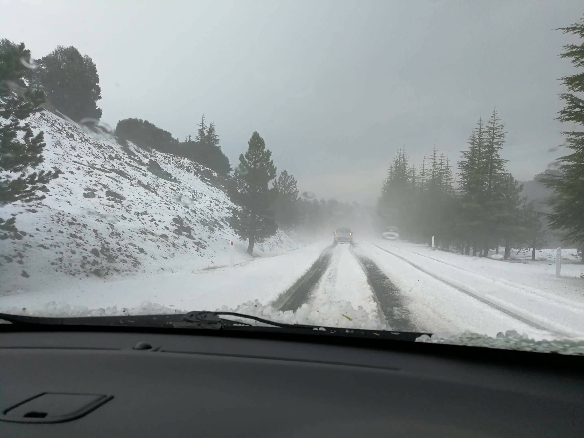 Μετά τις έντονες βροχοπτώσεις τις τελευταίες ημέρες, στη περιοχή του Ολύμπου, στο Τρόοδος, σημειώθηκε σφοδρή χαλαζόπτωση και χιονόπτωση, μετατρέποντας το σκηνικό σε λευκό τοπίο.