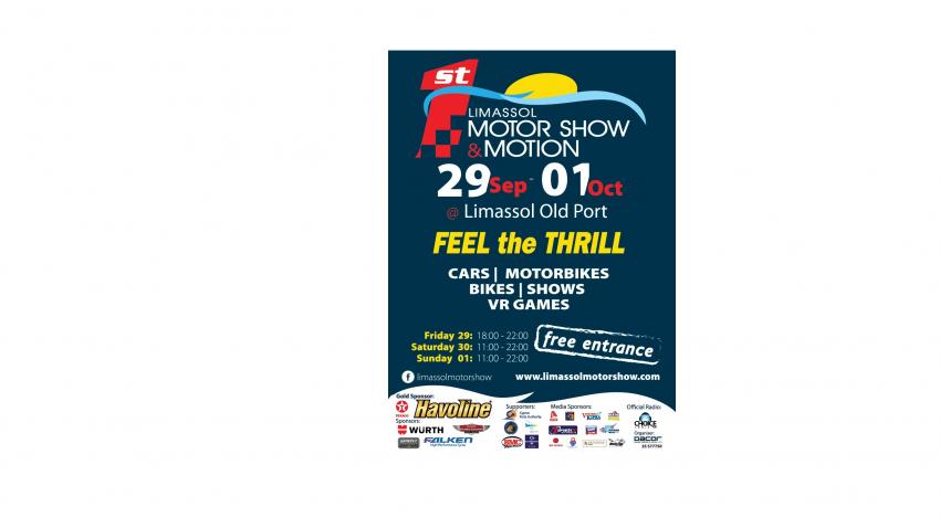Ένα μοναδικό και διαδραστικό event θα ξεκινήσει στο Παλιό Λιμάνι Λεμεσού την Παρασκευή 29 Σεπτεμβρίου. Τα εγκαίνια του 1ου Limassol Motor Show & Motion θα τα τελέσει ο Υπουργός Μεταφορών, Επικοινωνιών και Έργων, κος Μάριος Δημητριάδης μαζί με τον Δήμαρχο Λεμεσού, κο. Νίκο Νικολαϊδη.