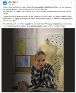 Συγκλονισμό για τον χαμό της Δημητριάνας εκφράζει η κοινότητα του Πανεπιστημίου UCLan Cyprus. στο οποίο ήταν τριτοετής φοιτήτρια του προγράμματος Fashion Design.