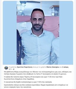 Θρήνο και βαρύ πένθος σκόρπισε στην κοινότητα Ορμήδειας ο αδόκητος θάνατος του 33χρονου Αργύρη Γεωργίου, πατέρα δύο ανήλικων παιδιών.