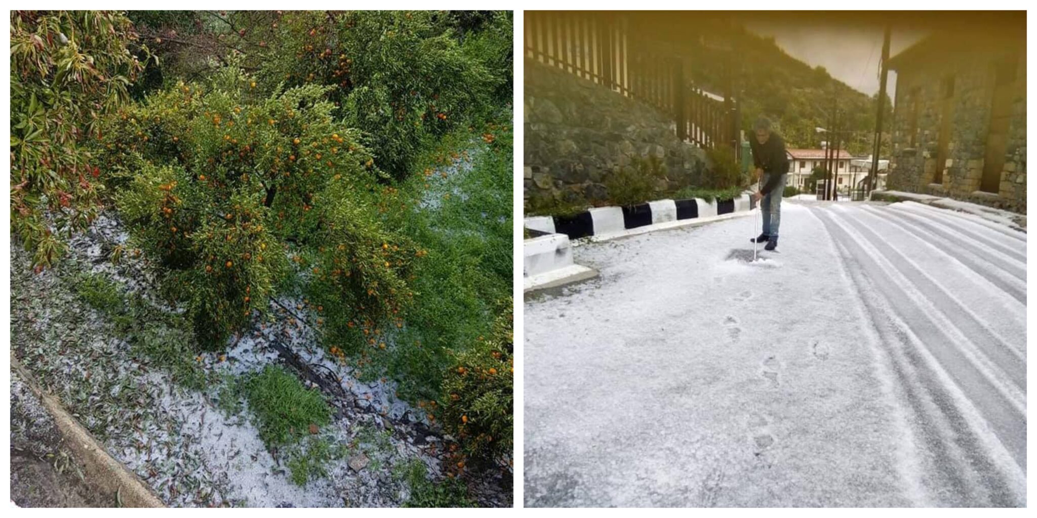 Η ολιγόλεπτη χαλαζόπτωση που σημειώθηκε στη Διερώνα της Επαρχίας Λεμεσού ήταν αρκετή για να καταστρέψει τα εσπεριδοειδή και συγκεκριμένα τις μανταρινιές.