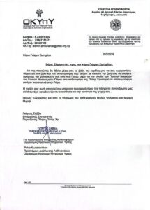 Ο ΟΚΥΠΥ απέστειλε επιστολή στον κύριο Σωτηρίου, με την οποία τον ευχαριστεί θερμά και χαρακτηρίζει την πράξη του «υπέρτατη προσφορά προς τον πάσχοντα συνάνθρωπο μας.»