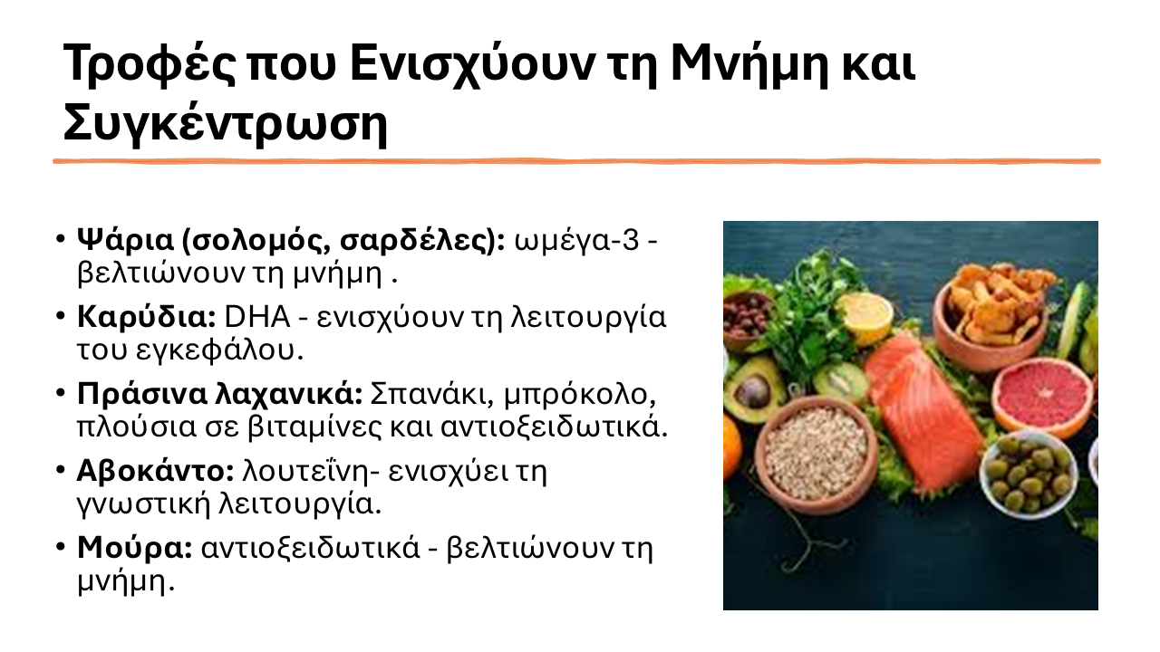 Σύμφωνα με την Δρ. Κονή, υπάρχουν τροφές οι οποίες μπορούν να ενισχύσουν τόσο τη μνήμη, όσο και τη συγκέντρωση των παιδιών μας κατά την εξεταστική περίοδο.