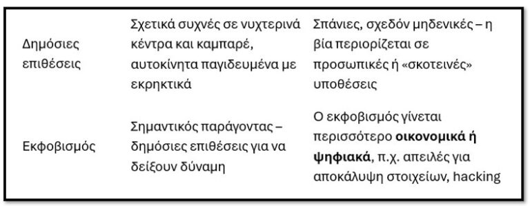 Τα προειδοποιητικά εκβιαστικά χτυπήματα προστασίας, με τις ηχηρές βομβιστικές επιθέσεις και τους εμπρησμούς, αν και εξακολουθούν και σήμερα να υπάρχουν, πολλές φορές παίρνουν τη μορφή αθόρυβων απειλών όπου μέσω διαδικτύου κυκλώματα μπλοκάρουν λογαριασμούς και υποκλέπτουν ευαίσθητα προσωπικά δεδομένα, ζητώντας λύτρα υπό μορφή κρυπτονομισμάτων για να μην προβούν σε δημοσιοποιήσεις αυτών των δεδομένων.
