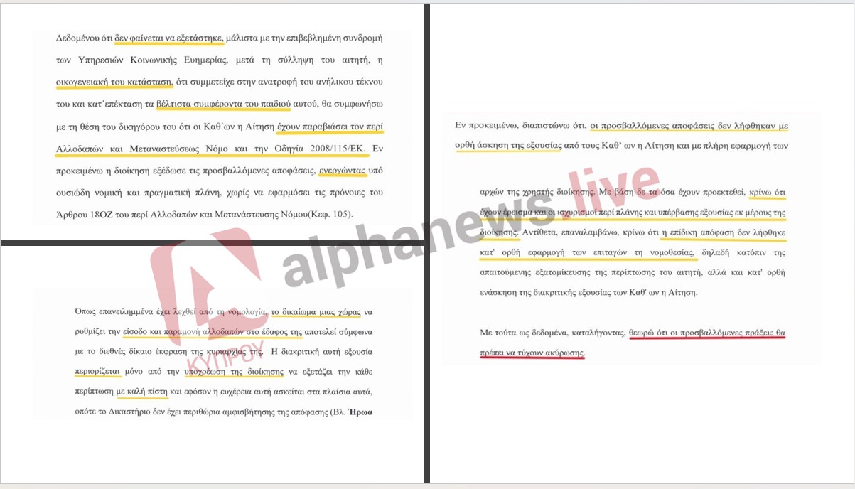 Η απόφαση του Διοικητικού Δικαστηρίου που ακύρωνε τα διατάγματα κράτησης-απέλασης.