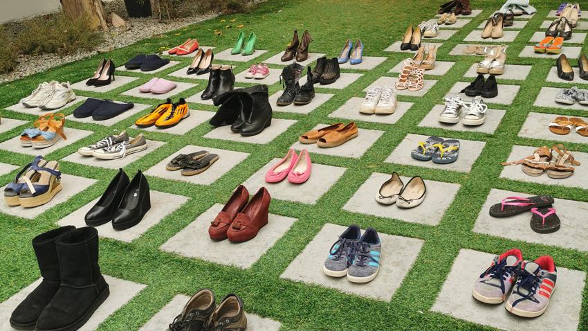 Το κοινό καλείται να προσέλθει στους χώρους του Πανεπιστημίου για να συμμετέχει στη δημιουργία του εικαστικού δρώμενου, που σχεδιάστηκε από το Τμήμα Τεχνών και Επικοινωνίας του Πανεπιστημίου, τοποθετώντας ένα ζευγάρι προσωπικά παπούτσια, σε προκαθορισμένο χώρο ως σύμβολο της ατομικής παρουσίας και δέσμευσής του για αλλαγή κουλτούρας και νοοτροπίας και εξάλειψης του φαινομένου. Το κοινό καλείται επίσης να υπογράψει την προσωπική του δέσμευση για υιοθέτηση συμπεριφορών που οδηγούν σε αμφισβήτηση στερεοτύπων των φύλων και προάγουν τον σεβασμό.