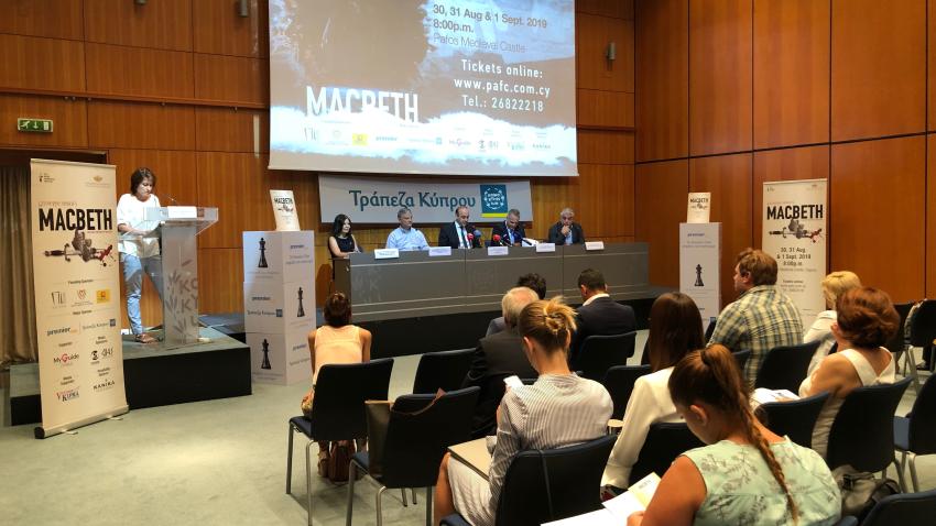 Η επίσημη εξαγγελία των παραστάσεων του Pafos Aphrodite Festival 2019, έγινε στη διάρκεια Συνέντευξης Τύπου που πραγματοποιήθηκε στο Κτήριο Κεντρικής Διοίκησης της Τράπεζας Κύπρου στη Λευκωσία, όπου παρουσιάστηκε η πολύ ενδιαφέρουσα διάσταση αυτού του οπερατικού θρίλερ, στο οποίο ο Verdi υπερβαίνει τα συμβατικά πλαίσια της εποχής του και συνθέτει ένα έργο με θεατρική δύναμη και με χαρακτήρες που διαθέτουν πρωτόγνωρο ψυχολογικό βάθος και ένταση, ενώ με τη δεξιοτεχνική ενορχήστρωση του επιτυγχάνει να σκιαγραφήσει θεαματικά τη βία, τη συνομωσία και το θάνατο. Όπως αναφέρθηκε, η έντονα τραγική και δραματική πλοκή του έργου, αφορά στην αναρρίχηση του Στρατηγού Macbeth στο θρόνο της Σκωτίας, αφού προηγουμένως δολοφόνησε το Βασιλιά Duncan και το Στρατηγό Banquo. Στην εκρηκτική όπερα, παρακολουθούμε το έγκλημα που διαπράττεται εξαιτίας της φιλοδοξίας της Λαίδη Macbeth και της ηθικής αδυναμίας του Στρατηγού Macbeth, οι οποίοι στο τέλος υποφέρουν από τα κακά σχέδια που εφάρμοσαν και πληρώνουν το τίμημα των πράξεων τους.