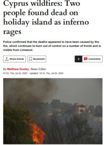 Όλα σχεδόν τα ΜΜΕ σε όλό τον κόσμο φιλοξενούν σήμερα δημοσιεύματα σχετικά με την καταστροφική πύρινη λαίλαπα της Λεμεσού, με βρετανικά να αναφέρονται στην Κύπρο, ως αγαπημένο προορισμό διακοπών για τους Βρετανούς.