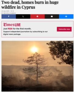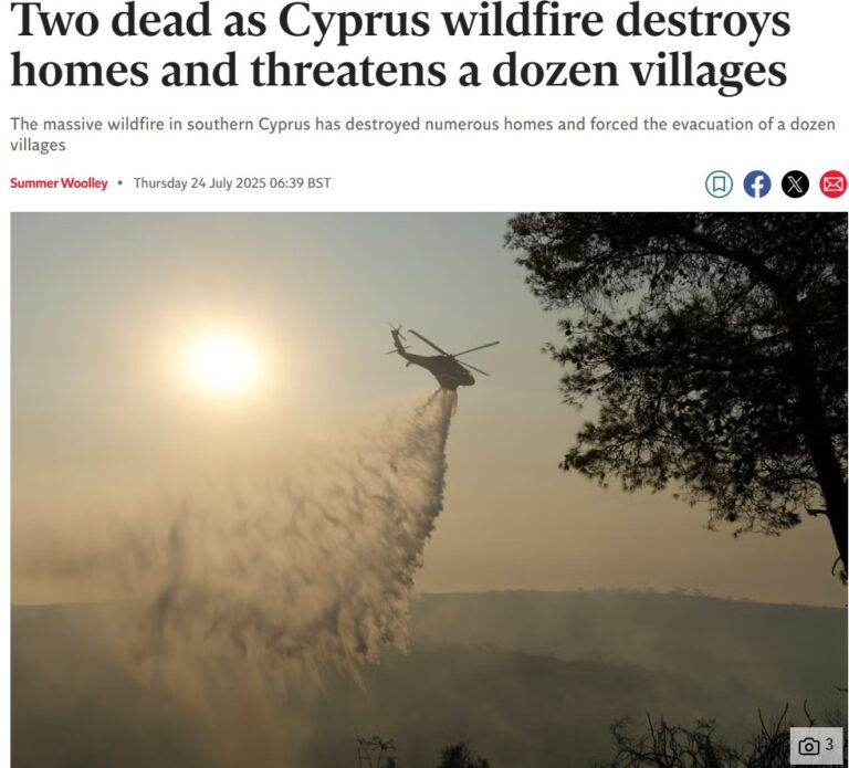 Δείτε σημερινά δημοσιεύματα σε διεθνή ΜΜΕ για την πυρκαγιά της Λεμεσού: