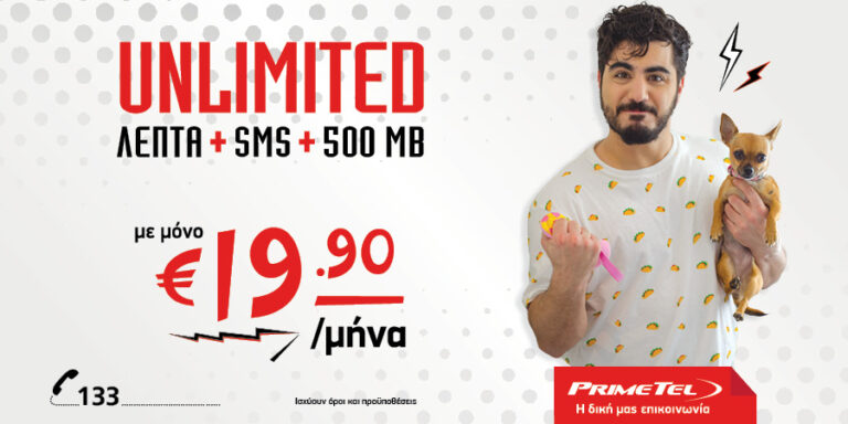 Η οικογένεια των προγραμμάτων κινητής Unlimited της PrimeTel ανανεώθηκε και ένα ακόμη πλάνο προστέθηκε με σκοπό να απελευθερώσει την επικοινωνία των συνδρομητών, προσφέροντας απεριόριστο χρόνο ομιλίας, απεριόριστα SMS και 500 MB mobile internet με μόνο €19.90!