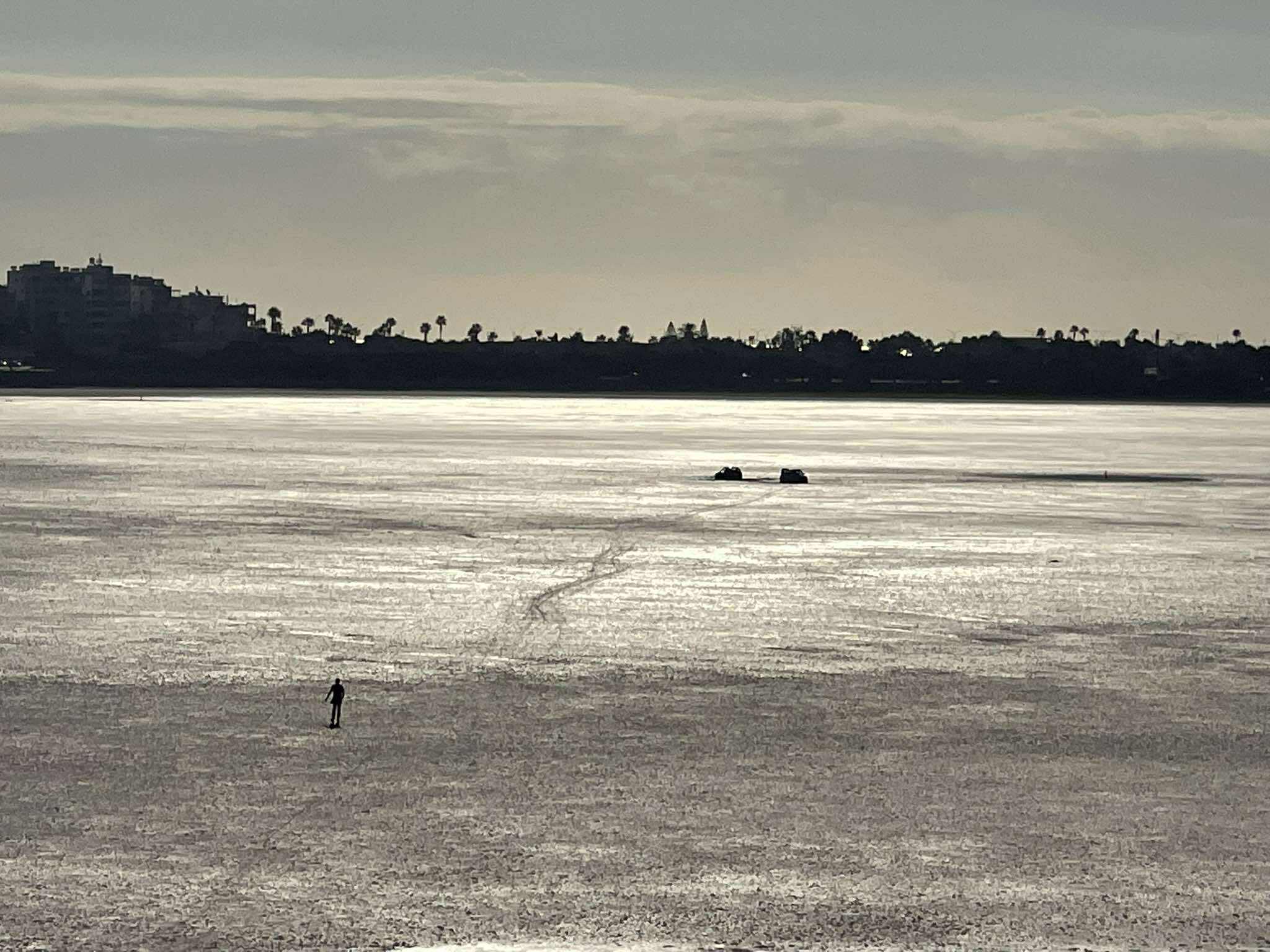 Πρόκειται για μια πολύ δύσκολη επιχείρηση εφόσον τα οχήματα βρίσκονται αρκετά μέτρα μέσα στην Αλυκή και μακριά από το σημείο όπου τα οχήματα εταιρείας μπόρεσαν να στηθούν για να επιχειρήσουν.