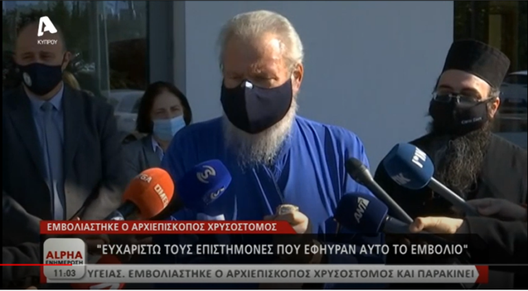 Στο Κέντρο Υγείας Λατσιών έλαβε σήμερα το εμβόλιο κατά της πανδημίας του κορωνοϊού, ο Προκαθήμενος της Εκκλησίας της Κύπρου Αρχιεπίσκοπος Χρυσόστομος. Έφτασε στο Κέντρο γύρω στις δέκα και δεκαπέντε το πρωί και πριν από το προκαθορισμένο ραντεβού που ορίστηκε από τους αρμόδιους λειτουργούς για να του χορηγήσουν το φάρμακο. Αμέσως μετά τον εμβολιασμό έστειλε μήνυμα στους πολίτες να μην φοβούνται και να εμβολιαστούν κατά του κορωνοϊου, καθώς και να τηρούν πιστά τα περιοριστικά και απαγορευτικά μέτρα κατά του COVID-19