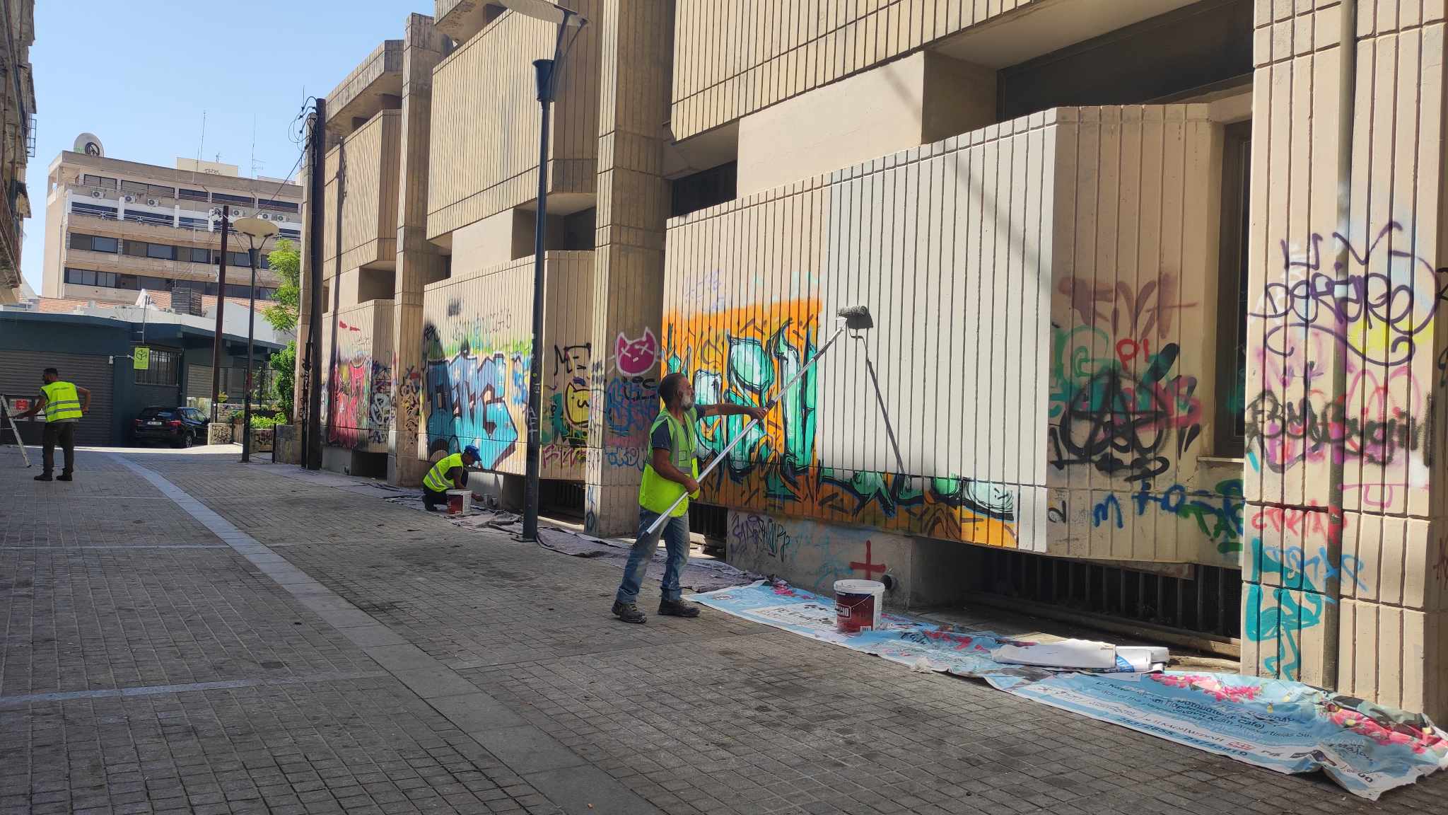 Την ίδια ώρα, εργαζόμενοι στον Δήμο και εθελοντές εκστρατεύουν οργανωμένα στο κέντρο της πόλης για να το καθαρίσουν από την άναρχη αναγραφή συνθημάτων και σχεδίων σε τοίχους, σιντριβάνια και πλατείες.