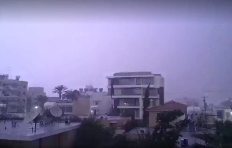 Χαρακτηριστικές είναι οι εικόνες από το κέντρο της Λευκωσίας όπου έγινε “η νύχτα μέρα” λόγω των κεραυνών που έπεσαν στην περιοχή.