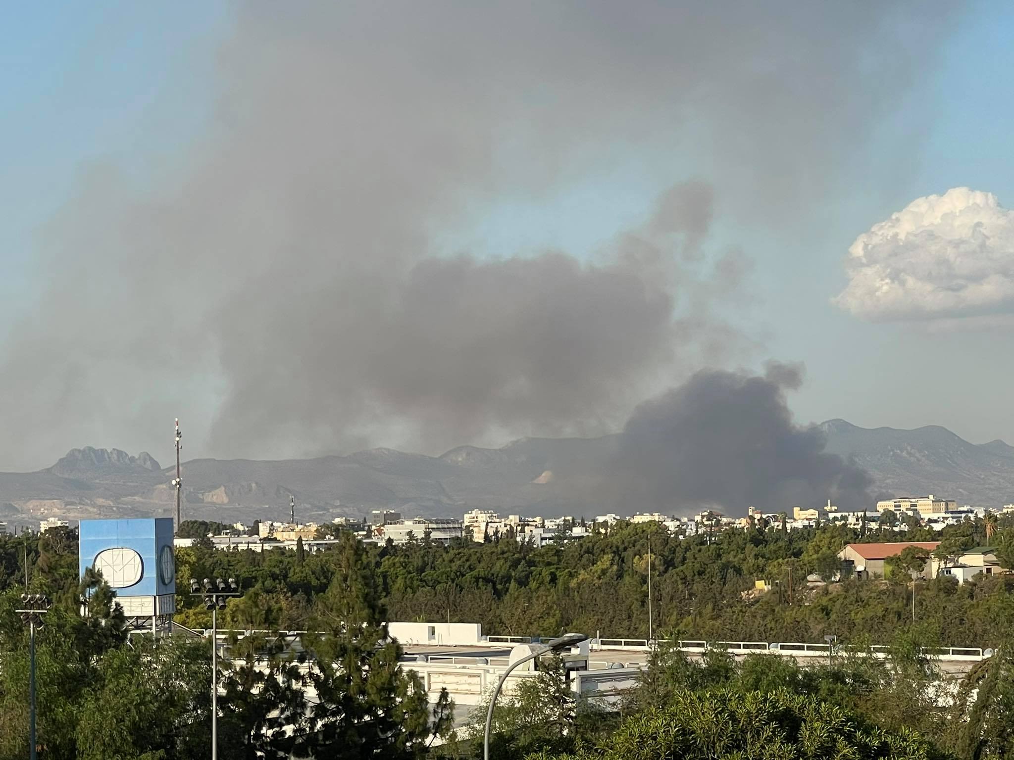 Οι πυκνοί μαύροι καπνοί που αναδύονται από την κατεχόμενη Μια Μηλιά είναι ορατοί από πολλά σημεία της Λευκωσίας.