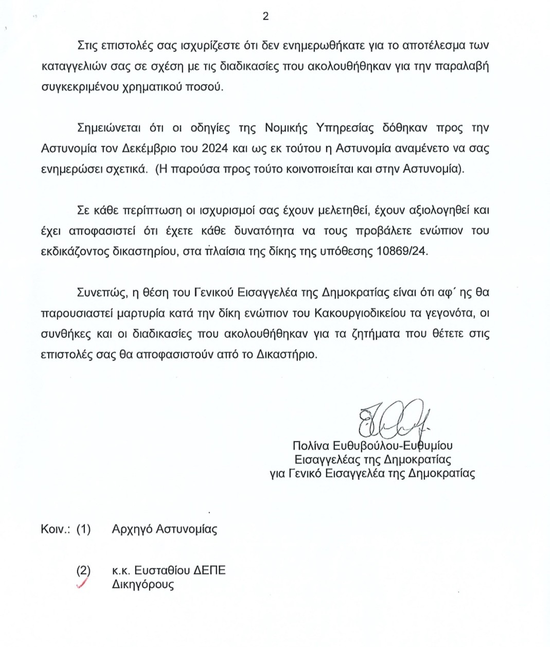 Αυτούσια η επιστολή που τους εστάλη