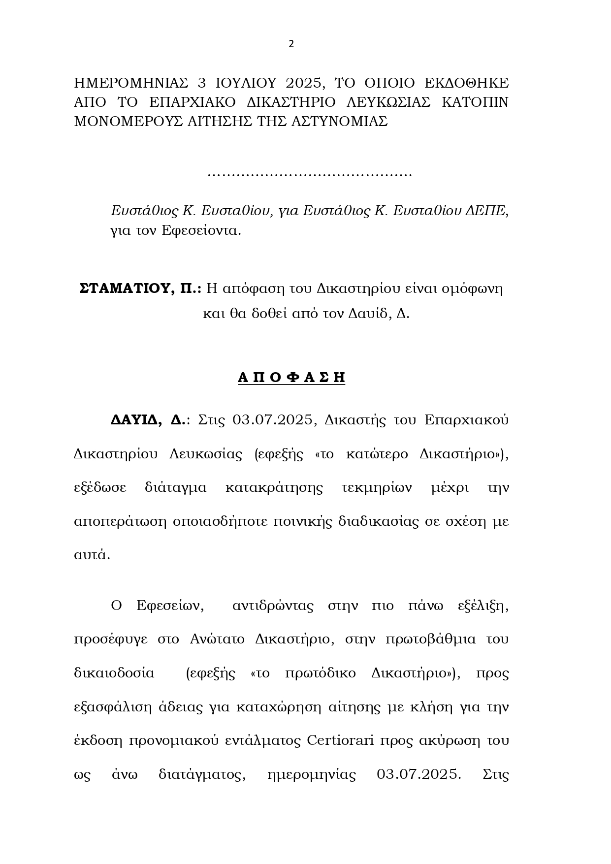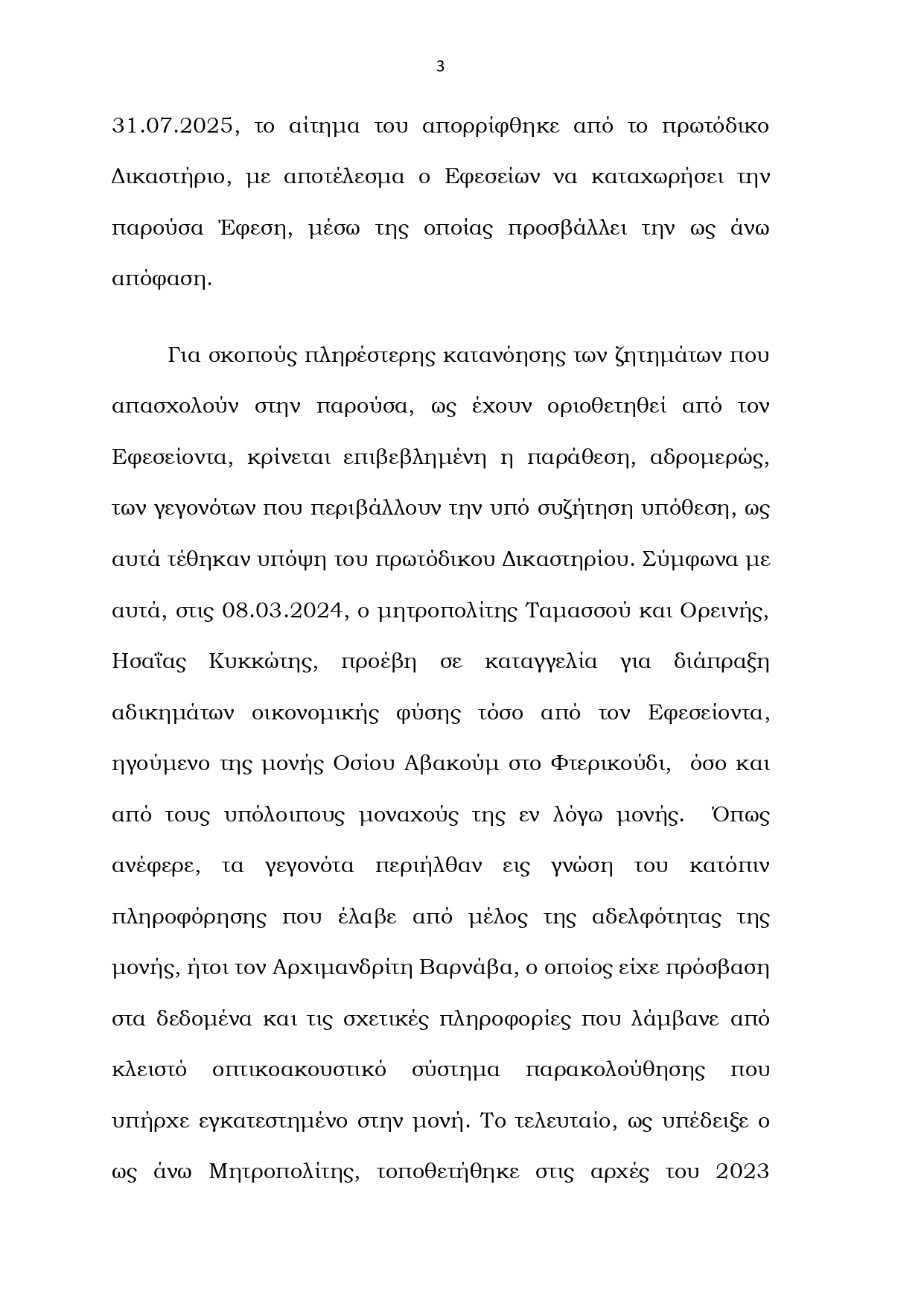 Ακολουθεί δήλωση του δικηγόρου των μοναχών Eυστάθιου Ευσταθίου: