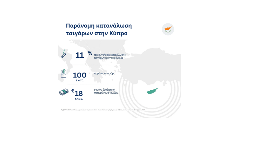 Στο 11% ανέρχεται το ποσοστό κατανάλωσης παράνομων τσιγάρων στην Κύπρο, σύμφωνα με τα αποτελέσματα της νέας ετήσιας ανεξάρτητης Έκθεσης της KPMG για το 2023, που διενεργήθηκε για λογαριασμό της Philip Morris International. Σύμφωνα με την Έκθεση, οι απώλειες φορολογικών εσόδων παραμένουν σε υψηλά επίπεδα αγγίζοντας τα 18 εκατομμύρια ευρώ, παρά την οριακή μείωση του ποσοστού κατανάλωσης παράνομων τσιγάρων στην Κύπρο.