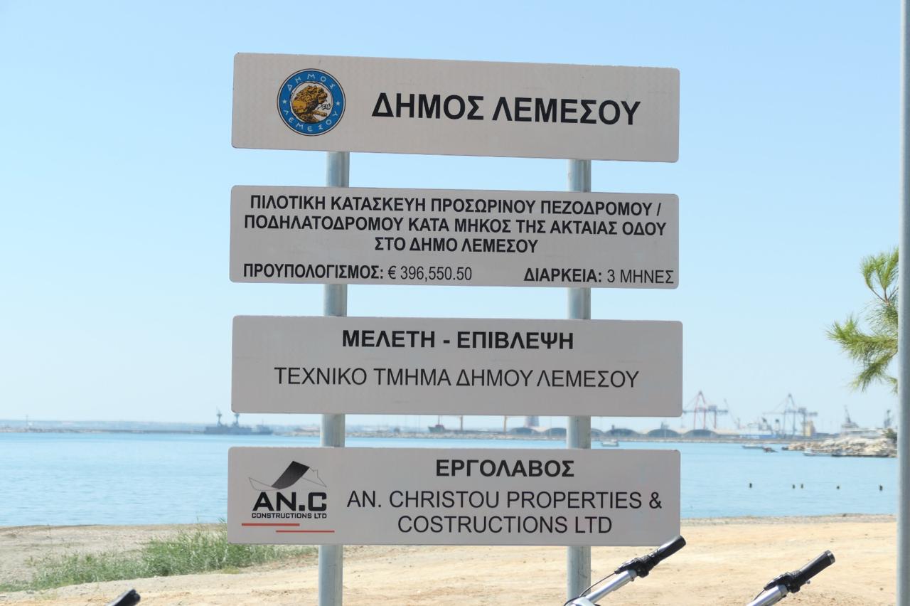 Το πιλοτικό έργο του Δήμου Λεμεσού, που καλύπτει το τμήμα από τη Μαρίνα Λεμεσού μέχρι την οδό Αλεξανδρείας, υλοποιήθηκε με προϋπολογισμό περίπου 400.000 ευρώ. Περιλαμβάνει τη δημιουργία πεζόδρομου και ποδηλατόδρομου συνολικού μήκους 1.050 μέτρων και πλάτους 4,5 μέτρων.