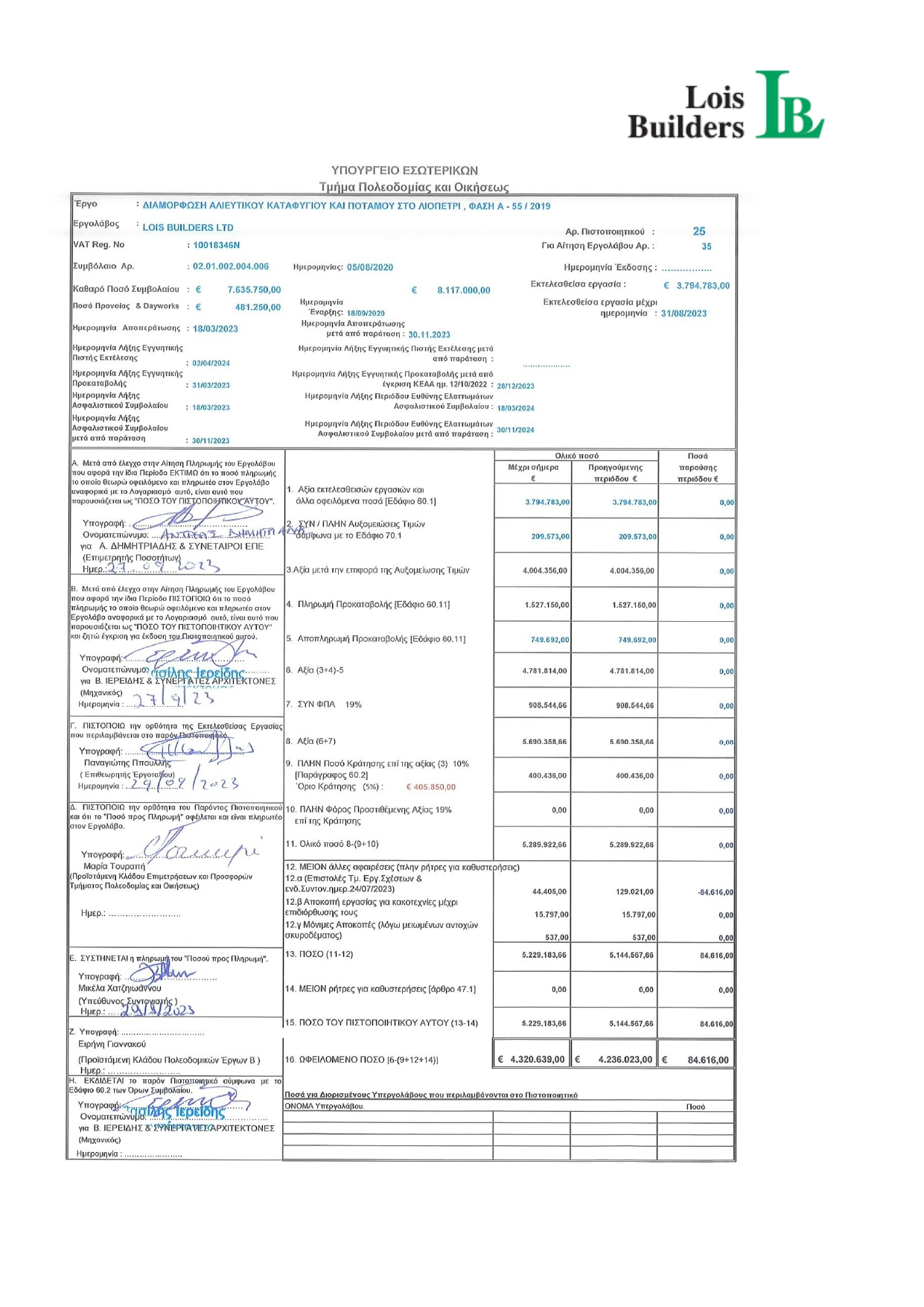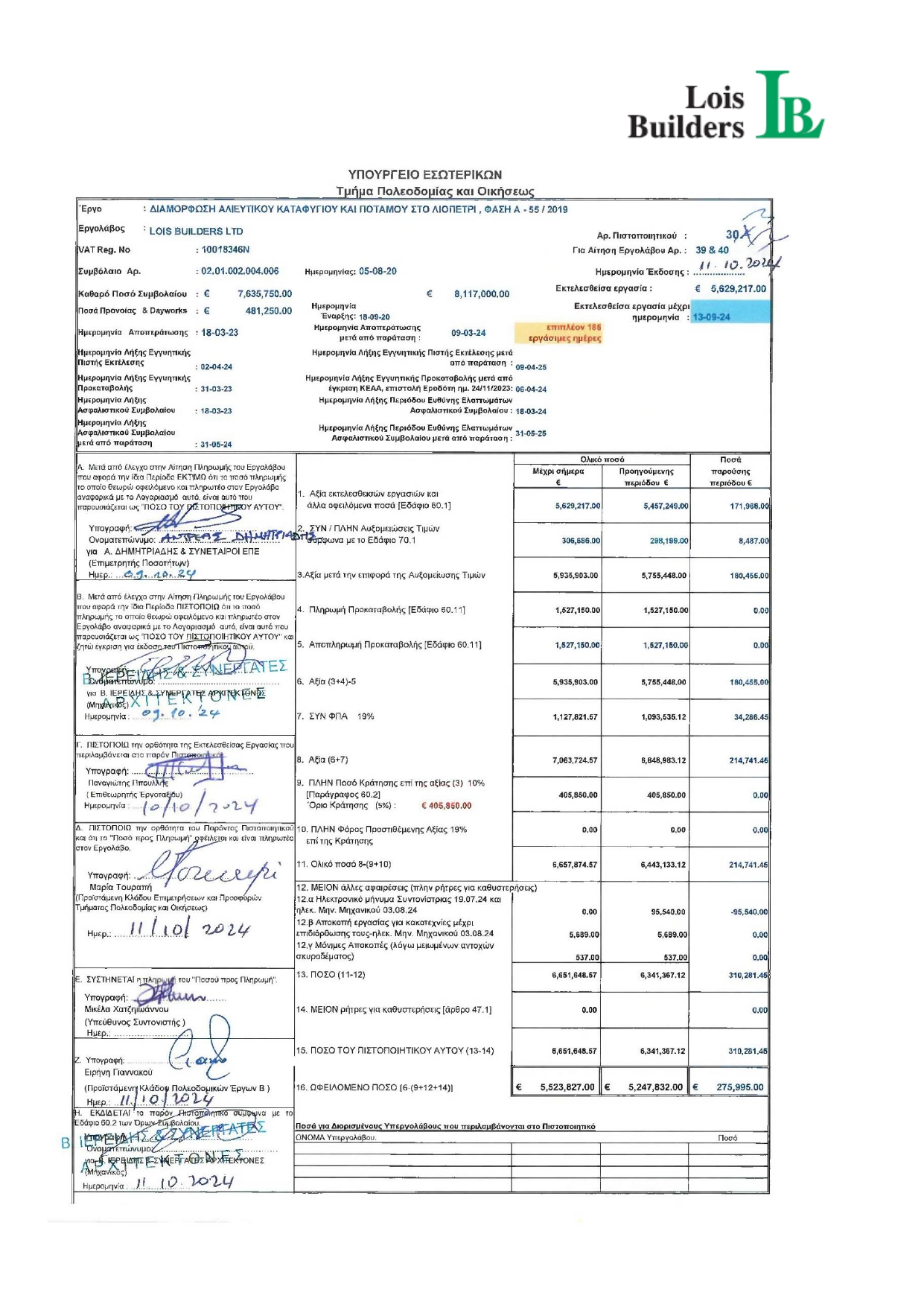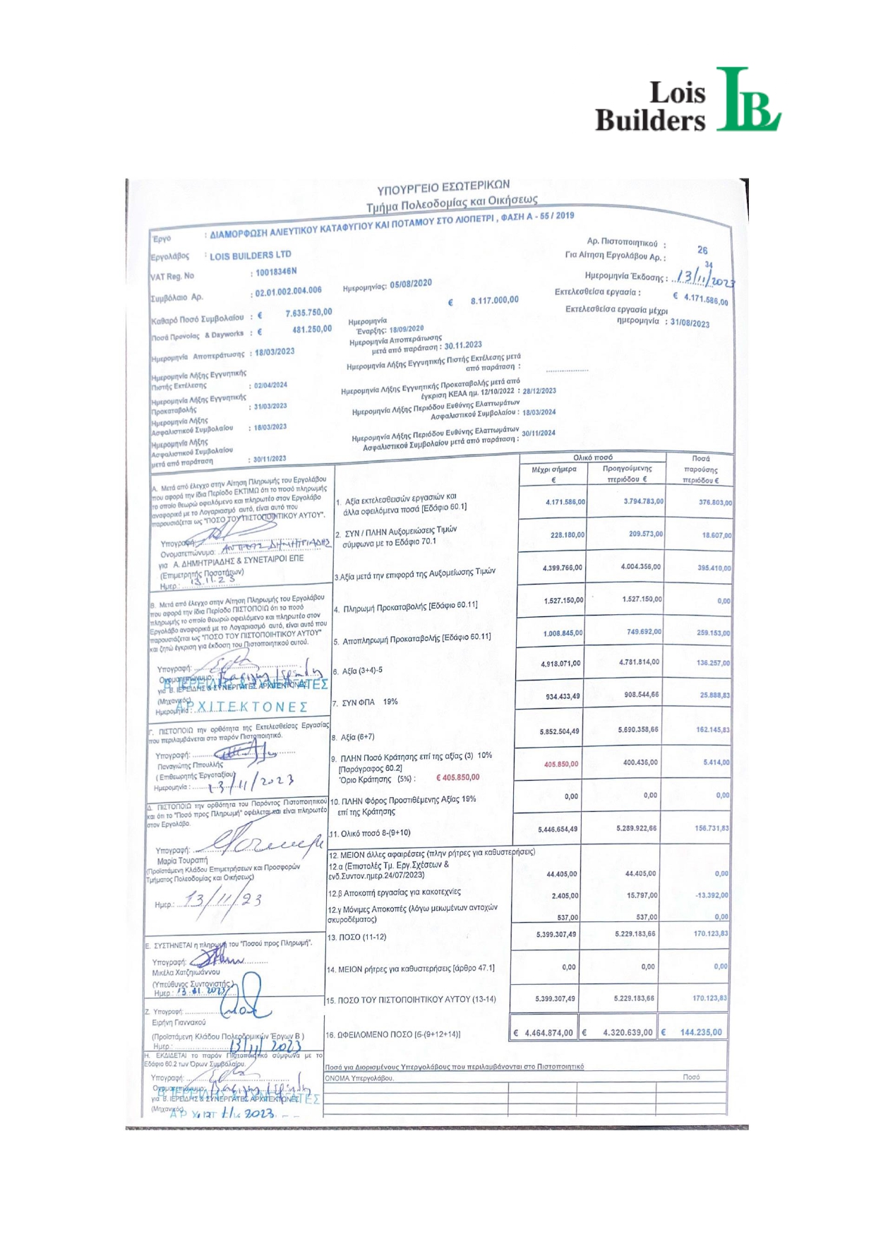 Εξασέλιδη επιστολή δίνει στη δημοσιότητα η εταιρεία Lois Builders, η οποία συντάχθηκε στις 13 Νοεμβρίου 2024 και εστάλη προς τα Υπουργεία Εσωτερικών και Γεωργίας, τη Βουλή των Αντιπροσώπων και την Ελεγκτική Υπηρεσία, στην οποία περιλαμβάνονται στοιχεία αναφορικά με τα όσα οδήγησαν σε λύση του συμβολαίου για κατασκευή του Αλιευτικού Καταφυγίου στον ποταμό Λιοπετρίου.