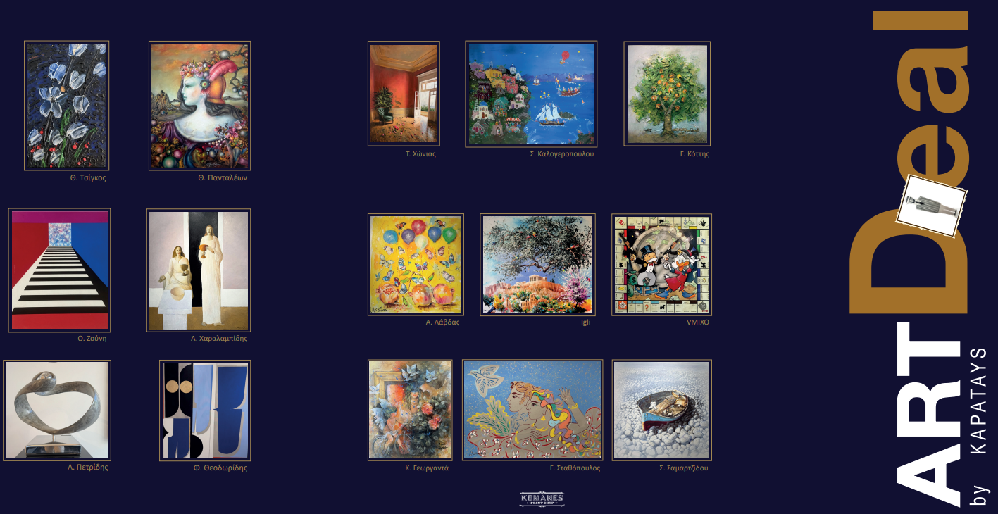 Το Art Deal αποτελεί μια μοναδική εικαστική εμπειρία, μέσα από τις εξαίρετες δημιουργίες καλλιτεχνών διεθνούς εμβέλειας, όπως ο Αλέκος Φασιανός, ο Γιάννης Γαΐτης, ο Δημήτρης Μυταράς, ο Παύλος, ο Σπύρος Βασιλείου, ο Ανδρέας Χαραλαμπίδης, και άλλων σύγχρονων καλλιτεχνών, όπως ο Διονύσης Ματαράγκας, η Κατερίνα Γεωργαντά, ο Ανδρέας Ψαράκος, ο Απόστολος Λάβδας, ο Άγγελος Ραζής, ο Γιάννης Στυλιανίδης, ο Κωνσταντίνος Πτωχόπουλος, η Κάτια Βαρβάκη, ο Δημήτρης Γέρος, ο Μιχάλης Χαραλαμπίδης, η Συλβάνα Σαμαρτζίδου, ο Igli Jorgo, ο V Mixo, ο Άρης Πετρίδης, ο Νίκος Φλώρος, η Μαρίνα Κοράκη, ο Τάσος Χώνιας και πολλοί άλλοι.