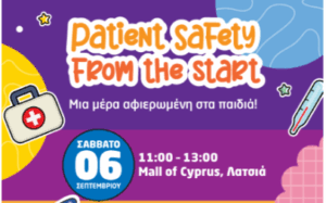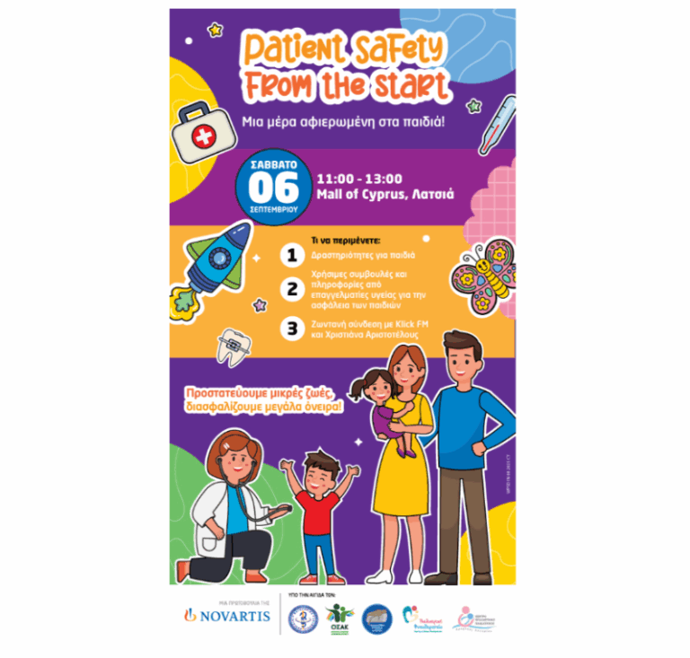 Η φαρμακευτική εταιρεία Novartis Pharma Services Inc. Κύπρου – στο πλαίσιο της εταιρικής υπευθυνότητάς της – και πιστή στην αποστολή της να βοηθά τους ανθρώπους να ζουν περισσότερο και καλύτερα, διοργανώνει, «Εκστρατεία Ενημέρωσης και Ευαισθητοποίησης του κοινού για την Παγκόσμια Ημέρα Ασφάλειας Ασθενών», στο The Mall of Cyprus, στα Λατσιά, Λευκωσία, στις 06 Σεπτεμβρίου 2025, Σάββατο και ώρα 11:00 – 13:00.