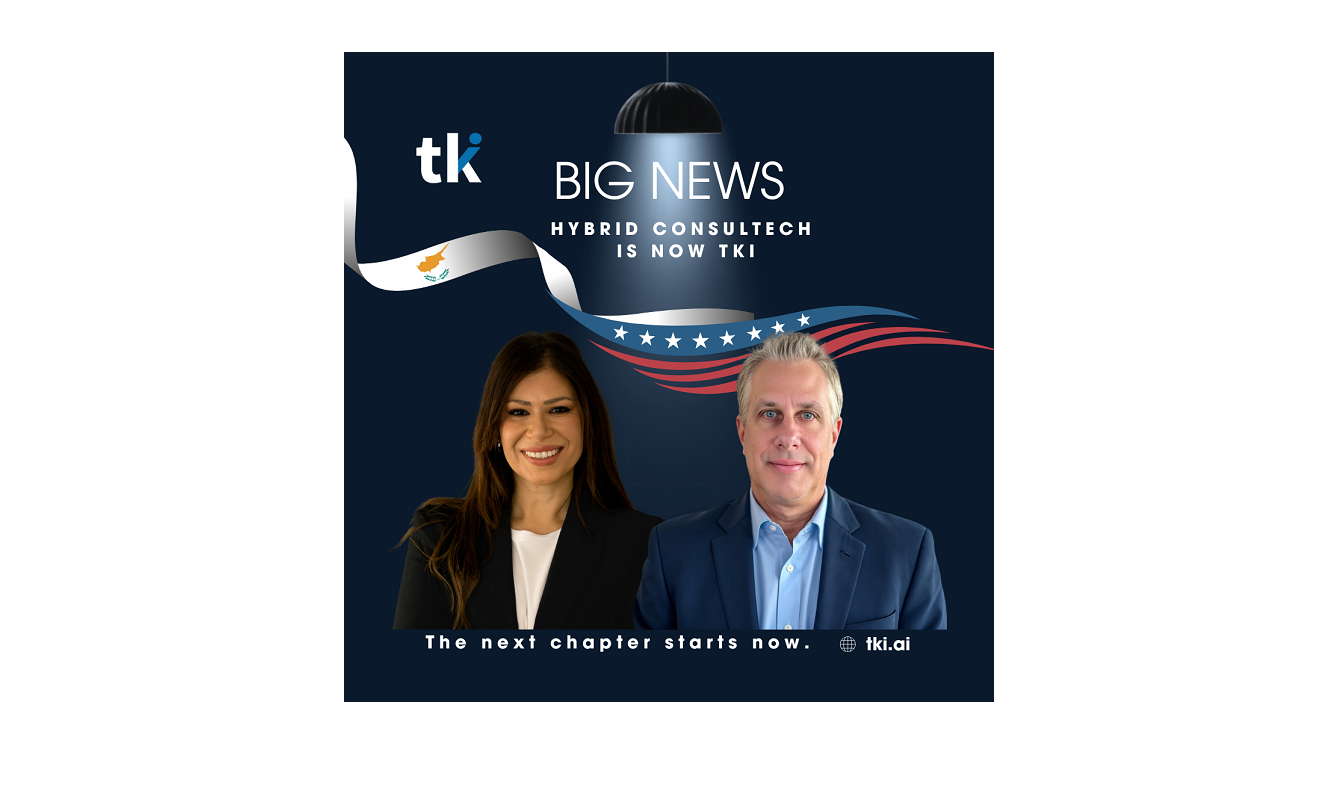 Μετά από μια επιτυχημένη χρονιά συνεργασίας στο πλαίσιο ενός joint venture, η Αμερικανική TKI και η Κυπριακή Hybrid ConsulTech συγχωνεύουν τις δραστηριότητές τους και θα λειτουργούν επισήμως υπό την ενιαία επωνυμία TKI. Η συγχώνευση εναρμονίζει πλήρως τις διεθνείς τους δραστηριότητες και επιβεβαιώνει την κοινή τους φιλοσοφία για παροχή λύσεων τεχνητής νοημοσύνης (AI) επιχειρησιακής κλάσης.