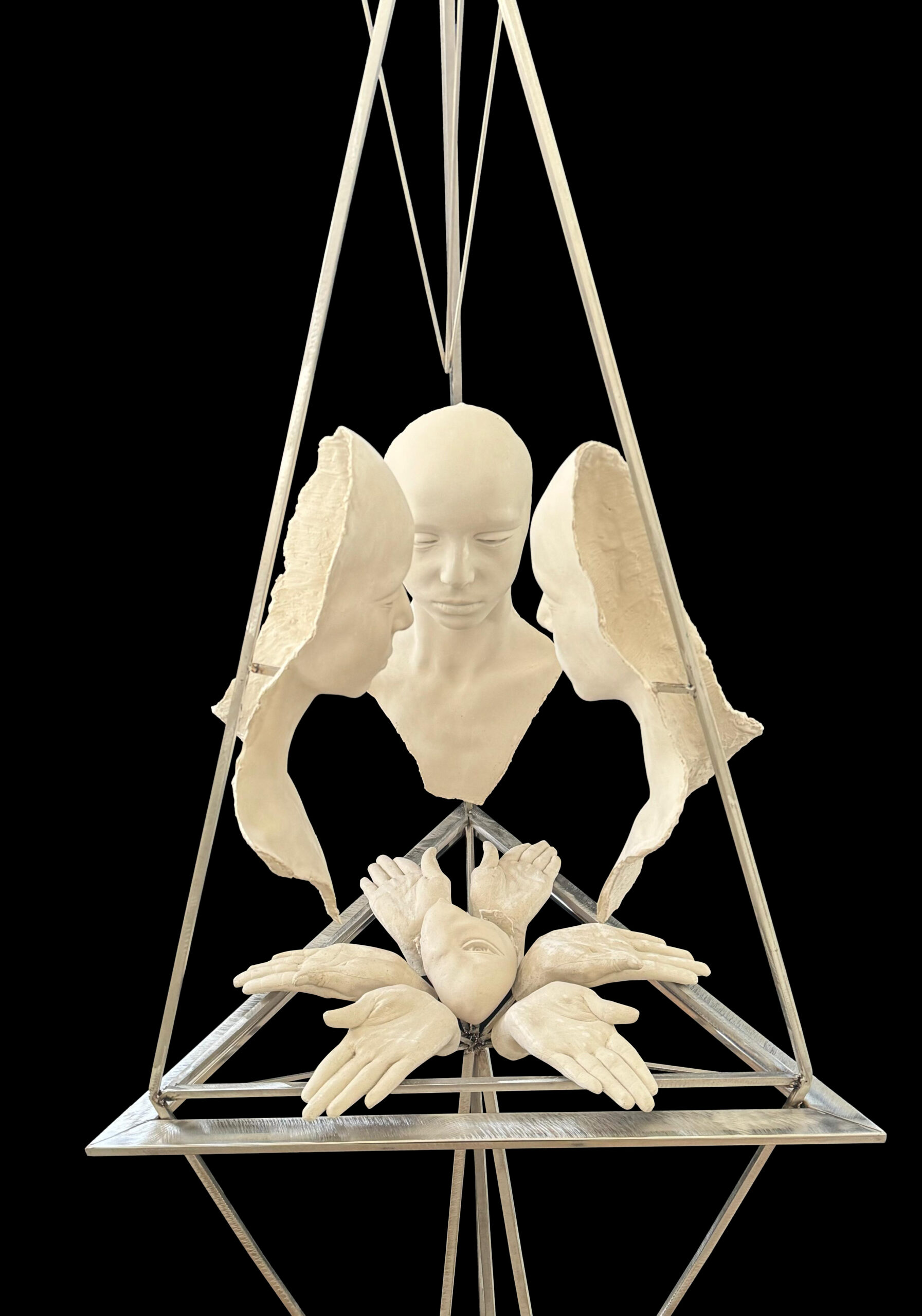 Τα έργα κινούνται μέσα από μεταβαλλόμενες καταστάσεις του είναι, ταλαντευόμενα ανάμεσα στην παρουσία και τη μεταμόρφωση. Η μεταμόρφωση αναδύεται είτε ως απελευθέρωση από ό,τι είναι έτοιμο να θεραπευτεί, είτε ως συνειδητή ανάπτυξη προς μια βαθύτερη, πιο αυθεντική έκφραση. Τα διαφορετικά επίπεδα συνείδησης αποκαλύπτονται μέσα από μια πλούσια ποικιλία καλλιτεχνικών γλωσσών και τεχνικών: μνημειακά γλυπτά, οικείες τερακότινες φόρμες και ζωγραφικά έργα που εκτείνονται από το μεταφυσικό έως παιγνιώδεις, χιουμοριστικές ερμηνείες των «σχημάτων λόγου».