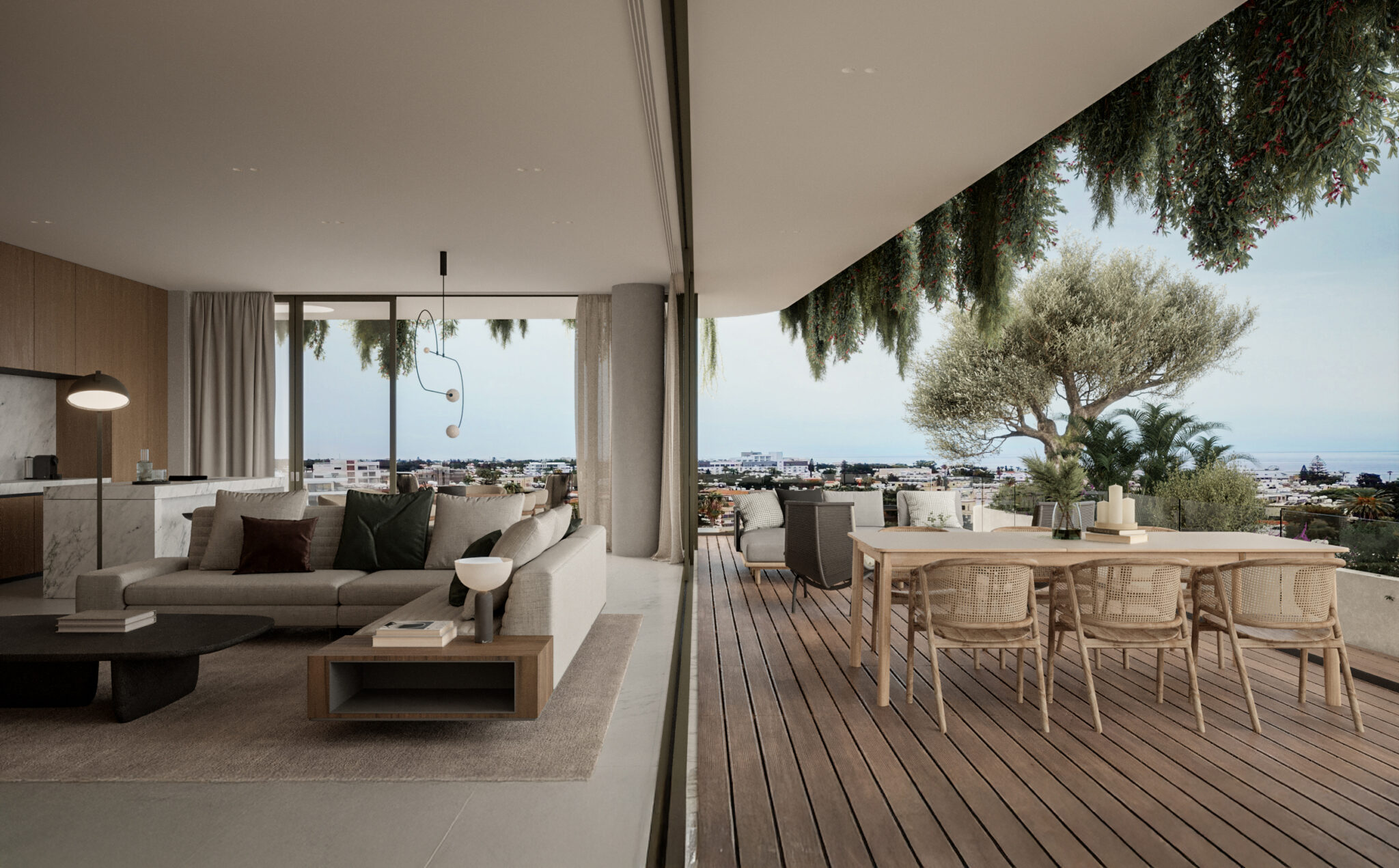 Τα διαμερίσματα σχεδιάστηκαν με γνώμονα τη σύγχρονη κατοίκηση. Ανοιχτές κατόψεις, μεγάλα ανοίγματα και ευρύχωρα μπαλκόνια επιτρέπουν τη φυσική ροή φωτός και τη σύνδεση με τον αστικό ορίζοντα και τη θάλασσα.