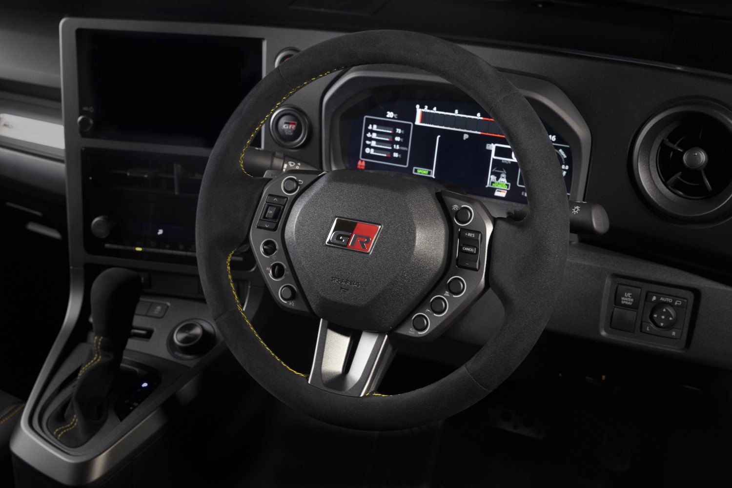 Οπτικά, η MORIZO RR ξεχωρίζει άμεσα. Το αποκλειστικό χρώμα Gravel Khaki, αγαπημένο του Akio Toyoda, συνδυάζει τον σπορ χαρακτήρα με μια διακριτική κομψότητα. Η μάσκα σε Piano Black, οι ζάντες σε Matte Bronze και το καπό από ανθρακονήματα συμπληρώνουν ένα ιδιαίτερα δυναμικό σύνολο. Οι δαγκάνες φρένων και οι ραφές στο εσωτερικό είναι βαμμένες στο χαρακτηριστικό κίτρινο του Morizo, προσθέτοντας μια αγωνιστική πινελιά. Στο εσωτερικό, το τιμόνι με επένδυση suede έχει μικρότερη διάμετρο, νέους διακόπτες και paddles σχεδιασμένα με βάση την εμπειρία από το αγωνιστικό GR Yaris Rally2, προσφέροντας καλύτερη εργονομία σε σπορ ρυθμούς.
