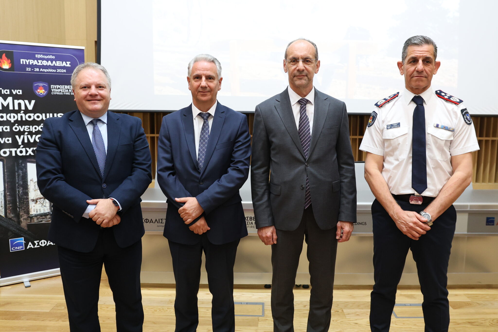 Με κεντρικό μήνυμα «Για να μην αφήσουμε τα όνειρά μας να γίνουν στάχτη» η Εβδομάδα Πυρασφάλειας διοργανώνεται από τις 22 έως τις 28 Απριλίου 2024, υπό την αιγίδα του Έντιμου Υπουργού Δικαιοσύνης και Δημόσιας Τάξης. Εφαλτήριο της Εβδομάδας Πυρασφάλειας ήταν η δημοσιογραφική διάσκεψη που διοργανώθηκε στις 22 Απριλίου, στα Κεντρικά Γραφεία του Ομίλου CNP CYPRUS. Σε αυτή απηύθυναν χαιρετισμούς ο Υπουργός Δικαιοσύνης και Δημόσιας Τάξης κ. Μάριος Χαρτσιώτης, ο Αρχιπύραρχος της Πυροσβεστικής Υπηρεσίας Κύπρου κ. Νίκος Λογγίνος, ο Πρώτος Εκτελεστικός Διευθυντής του Ομίλου CNP CYPRUS, κ. Τάκης Φειδία και ο Γενικός Διευθυντής της CNP ΑΣΦΑΛΙΣΤΙΚΗ, κ. Ανδρέας Κ. Στυλιανού.
