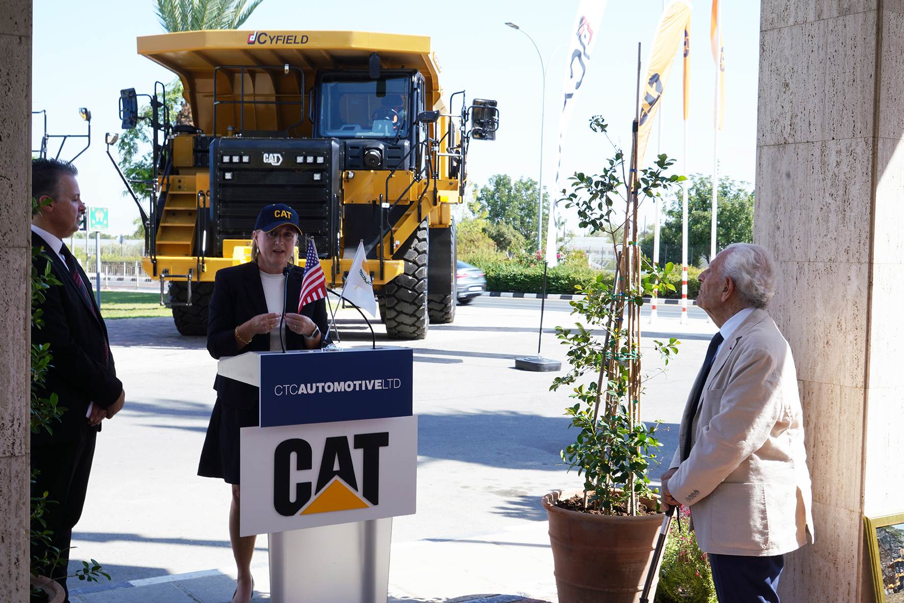Την τελετή τίμησε με την παρουσία της και η Πρέσβειρα των Ηνωμένων Πολιτειών Αμερικής κα Julie Fisher, την δε εταιρεία Cyfield εκπροσώπησε η εκ των διευθυντών κα Δέσποινα Χρυσοχού.  Ο Επίτιμος Ισόβιος πρόεδρος του Ομίλου CTC, κ. Νίκος Κ. Σιακόλας καλωσορίζοντας  τους προσκεκλημένους και ευχαριστώντας τους για την παρουσία του, αναφέρθηκε στους ιστορικούς δεσμούς με τις ΗΠΑ, αφού η CTC αντιπροσωπεύει την Caterpillar στην Κύπρο για πάνω από 90 χρόνια, με την οποία υπάρχει άριστη σχέση και πολύχρονη, επιτυχής συνεργασία. Διαβεβαίωσε δε την κα Fisher ότι ο Όμιλος των Εταιρειών CTC θα συνεχίσει και να αναπτύξει περαιτέρω τις εμπορικές σχέσεις, τόσο με τη Caterpillar, όσο και με άλλες Αμερικανικές εταιρείες.