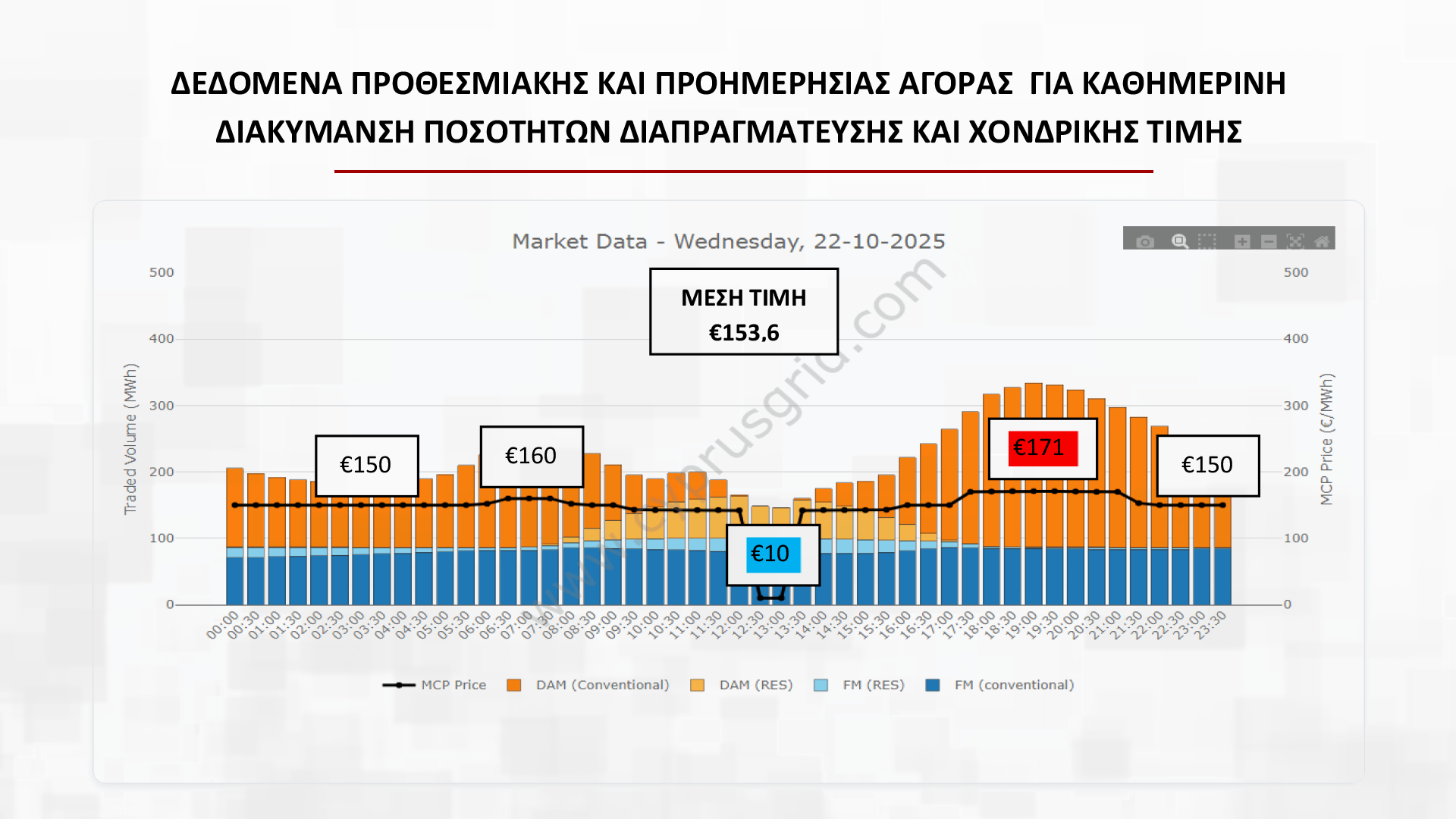 O Ειδικός σε θέματα ενέργειας Ηλεκτρολόγος-Μηχανικός Χρίστος Χατζηλαού παρουσίασε γραφικές παραστάσεις και στοιχεία από τις τρείς πρώτες εβδομάδες λειτουργίας της Ανταγωνιστικής Αγοράς Ηλεκτρισμού που καταδεικνύουν ότι το μείγμα συμβατικής παραγωγής από ΑΗΚ και παραγωγής από ΑΠΕ λειτουργεί εις βάρος των καταναλωτών σε συγκεκριμένες ώρες της ημέρας που η αποζημίωση δίνεται με βάση τη συμβατική παραγωγή.
