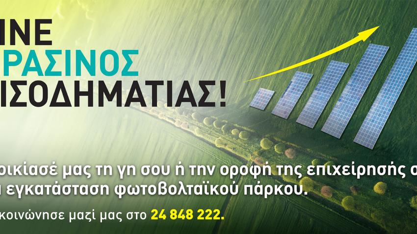 Εάν διαθέτεις λοιπόν ανεκμετάλλευτη έκταση γης ή επιχείρηση, της οποίας η οροφή προσφέρεται για εγκατάσταση φωτοβολταϊκών, τότε μπορείς να επικοινωνήσεις με την εταιρεία.