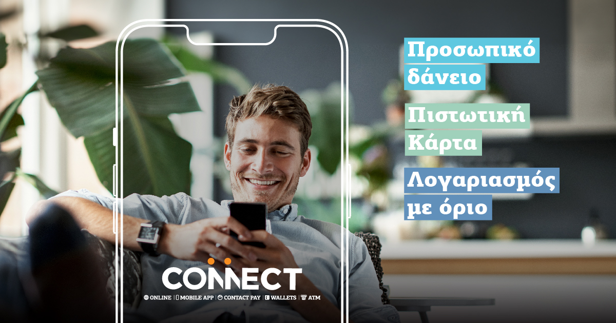Γρήγορα και από οποιοδήποτε σημείο και αν βρίσκονται, μόνο με τη χρήση του κινητού τους, οι πελάτες μπορούν να κάνουν CONNECT στο Hellenic Bank Mobile App και μέσα από μερικά απλά βήματα να υποβάλουν αίτηση για τις πιστωτικές διευκολύνσεις που επιθυμούν.