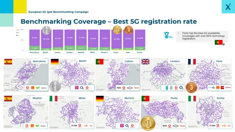 Σε ολόκληρη την Ευρώπη, το Βερολίνο είναι η πόλη με την καλύτερη εμπειρία 5G ανάμεσα στις άλλες ευρωπαϊκές πόλεις, με τη Βαρκελώνη και το Παρίσι να ακολουθούν. Επίσης, το Μιλάνο έχει τα πιο αξιόπιστα δίκτυα (99,9% αξιοπιστία υπηρεσίας κατά μέσο όρο) ενώ το Πόρτο έχει την ευρύτερη κάλυψη 5G (ποσοστό καταγραφής 91%), λαμβάνοντας υπόψη όλους τους παρόχους κινητής τηλεφωνίας σε κάθε πόλη.