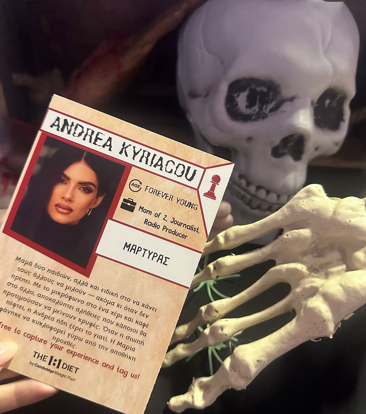 Μια βραδιά γεμάτη μυστήριο, ίντριγκα και τρόμο εκτυλίχθηκε την Παρασκευή 24 Οκτωβρίου στις 19:00, καθώς η The 1:1 Diet άνοιξε τις πόρτες των Κεντρικών της Γραφείων για μια μοναδική γιορτή του Halloween. Influencers, γνωστές προσωπικότητες, Σύμβουλοι και φίλοι του brand προσκλήθηκαν να ζήσουν μια διαδραστική εμπειρία «Murder Mystery», ειδικά σχεδιασμένη για την περίσταση.
