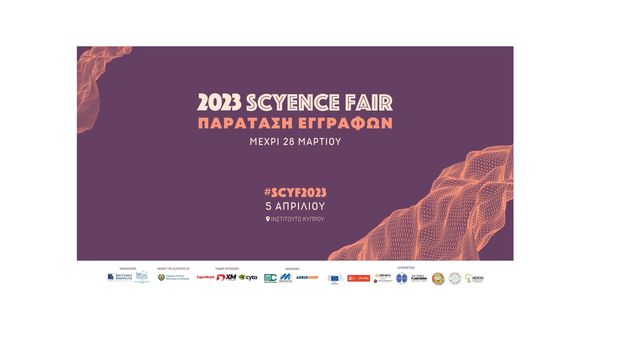 Εντυπωσιακή είναι η ανταπόκριση των μαθητών στην πρόσκληση για συμμετοχή στο πρωτοποριακό Φεστιβάλ Επιστήμης “sCYence Fair 2023”, που διοργανώνει το Ινστιτούτο Κύπρου, στις 5 Απριλίου 2023.