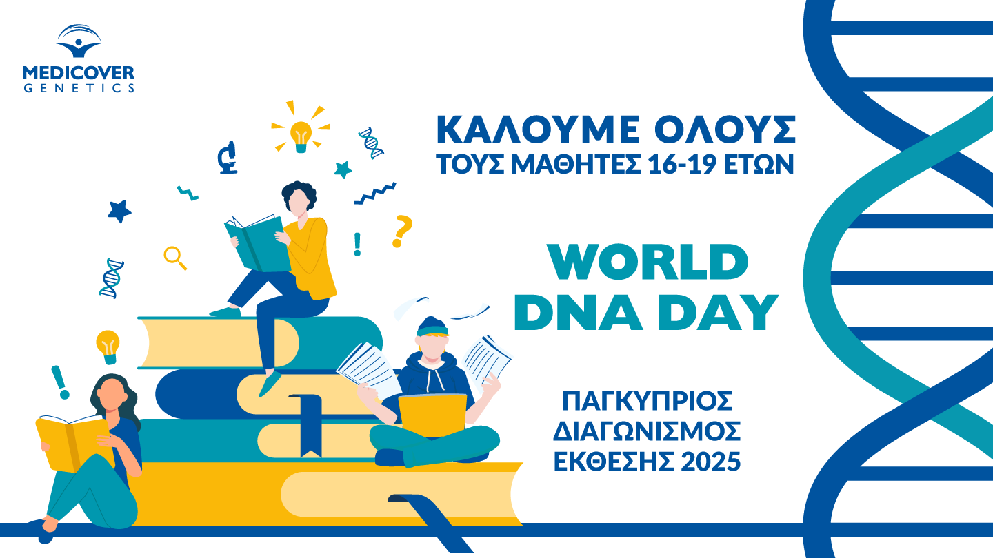 Η Medicover Genetics, Cyprus διοργανώνει για τρίτη συνεχόμενη χρονιά Παγκύπριο διαγωνισμό γραπτής έκθεσης, προσφέροντας μια μοναδική ευκαιρία σε μαθητές/τριες Λυκείου (δημόσιων και ιδιωτικών) και Τεχνικών Σχολών (16-19 ετών) να συμμετάσχουν σε αυτόν. Ο διαγωνισμός, ο οποίος υποστηρίζεται από την Επιθεώρηση Βιολογίας του Υπουργείου Παιδείας, Αθλητισμού και Νεολαίας της Κύπρου, διεξάγεται στο πλαίσιο της Παγκόσμιας Ημέρας DNA που τιμάται κάθε χρόνο στις 25 Απριλίου και οι δύο καλύτερες εκθέσεις θα κερδίσουν χρηματικό βραβείο.