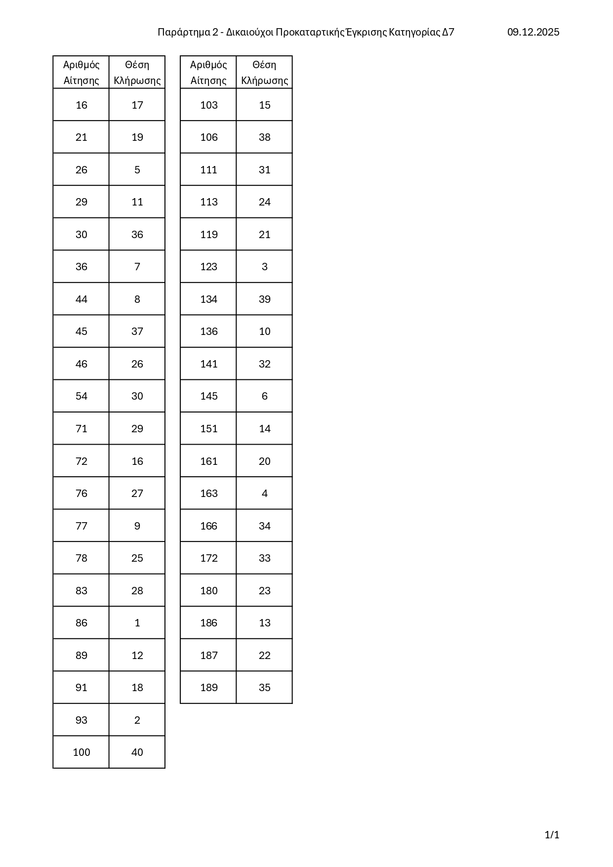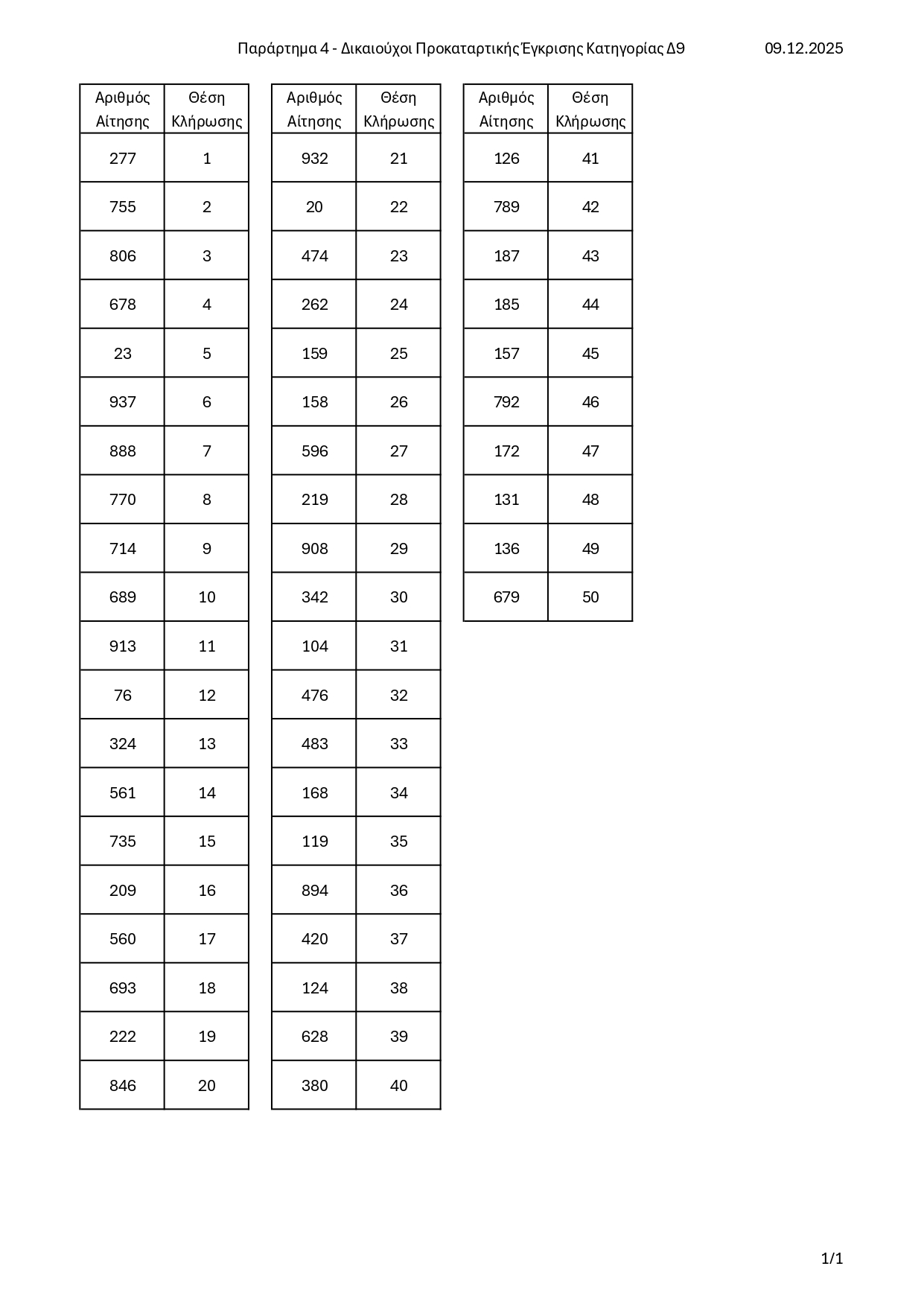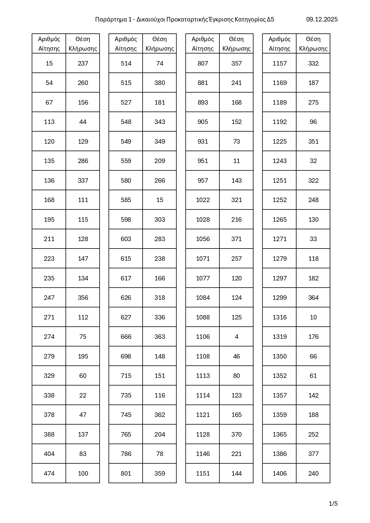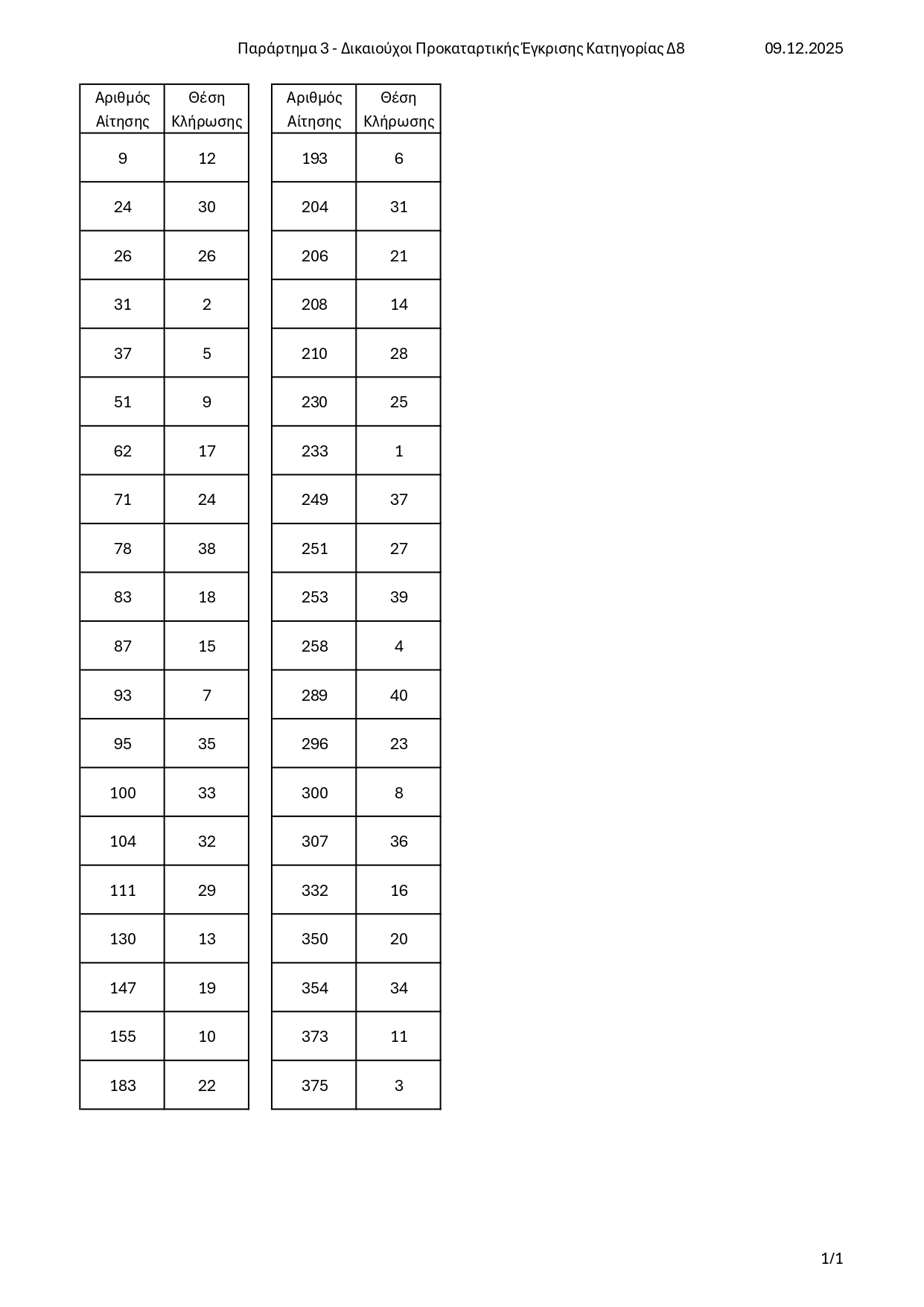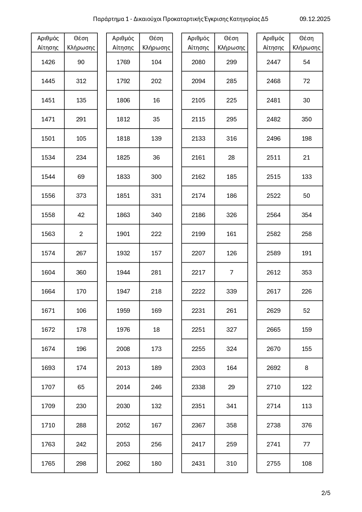 Οι νικητές της κλήρωσης θα λάβουν ηλεκτρονικό μήνυμα. Παρακάτω εμφανίζονται οι νικητές οι οποίοι αναγράφονται με τον αριθμό της αίτησής τους. Τον αριθμό της αίτησής σου μπορείς να τον εντοπίσεις στο ηλεκτρονικό μήνυμα που έλαβες όταν καταχώρησες την αίτηση.