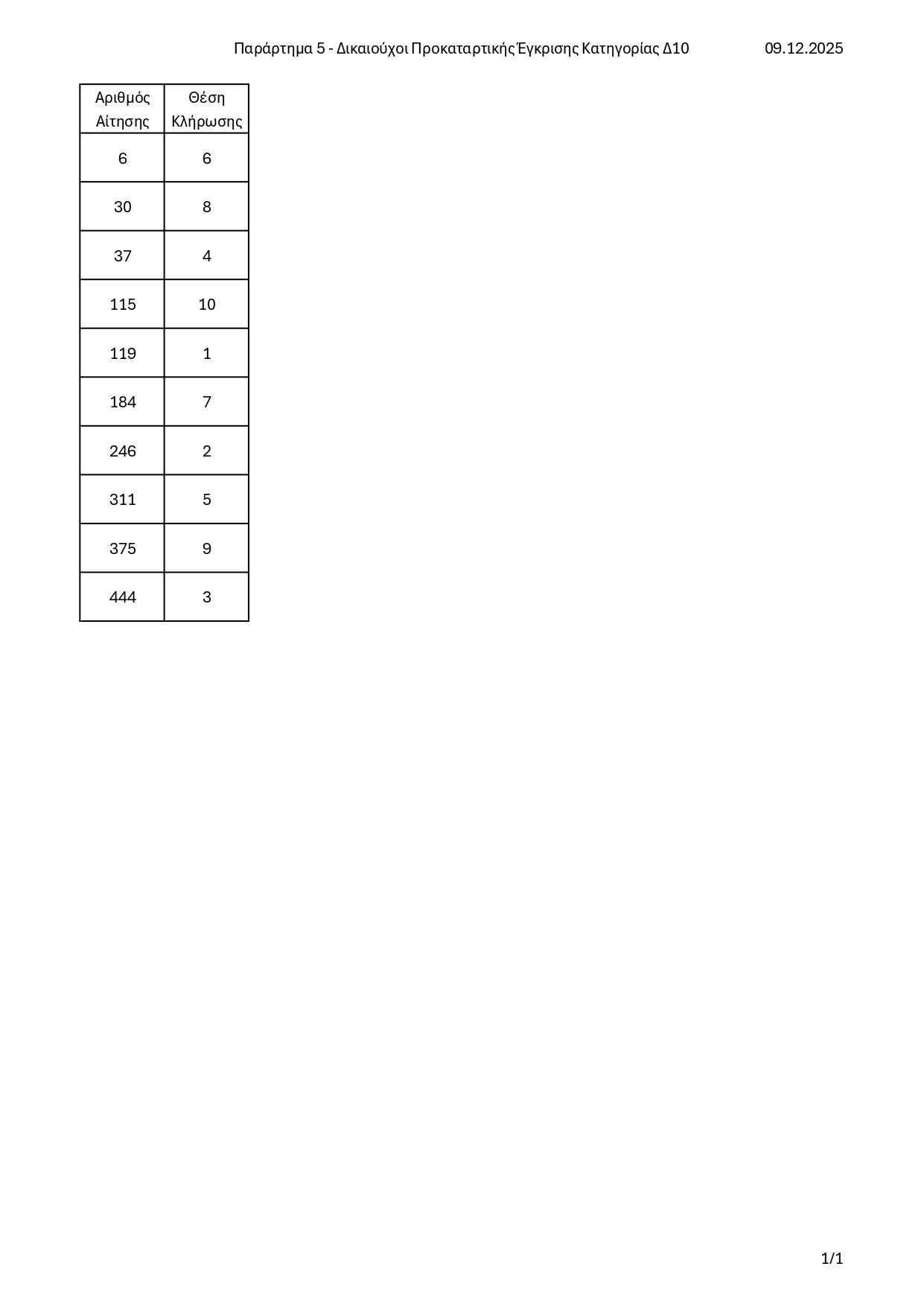 Βάσει του Οδηγού του Σχεδίου, προκαταρκτική έγκριση θα αποσταλεί στους πρώτους κατά σειρά κληρωθέντες ανά κατηγορία, ως ακολούθως: