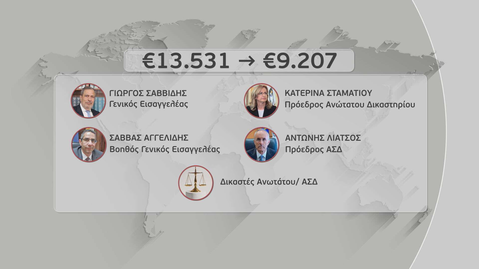 Ο πρόεδρος και οι δικαστές των Επαρχιακών και Διοικητικών Δικαστηρίων, του Εμπορικού Δικαστηρίου και του Ναυτοδικείου, έχουν καθαρό μηνιαίο μισθό 7.456 ευρώ.