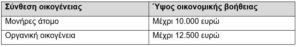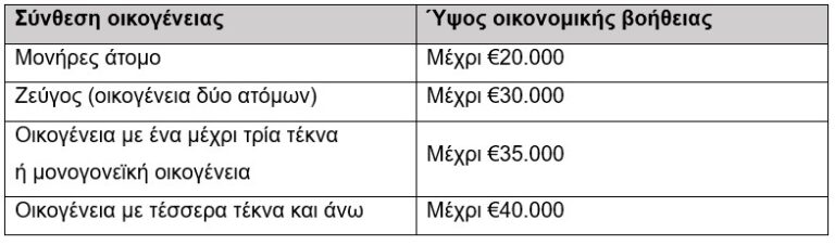Υπενθυμίζεται ότι το ύψος της οικονομικής βοήθειας για απόκτηση κατοικίας/διαμερίσματος (στεγαστικά σχέδια ανέγερσης και αγοράς) καθορίζεται ως ακολούθως: