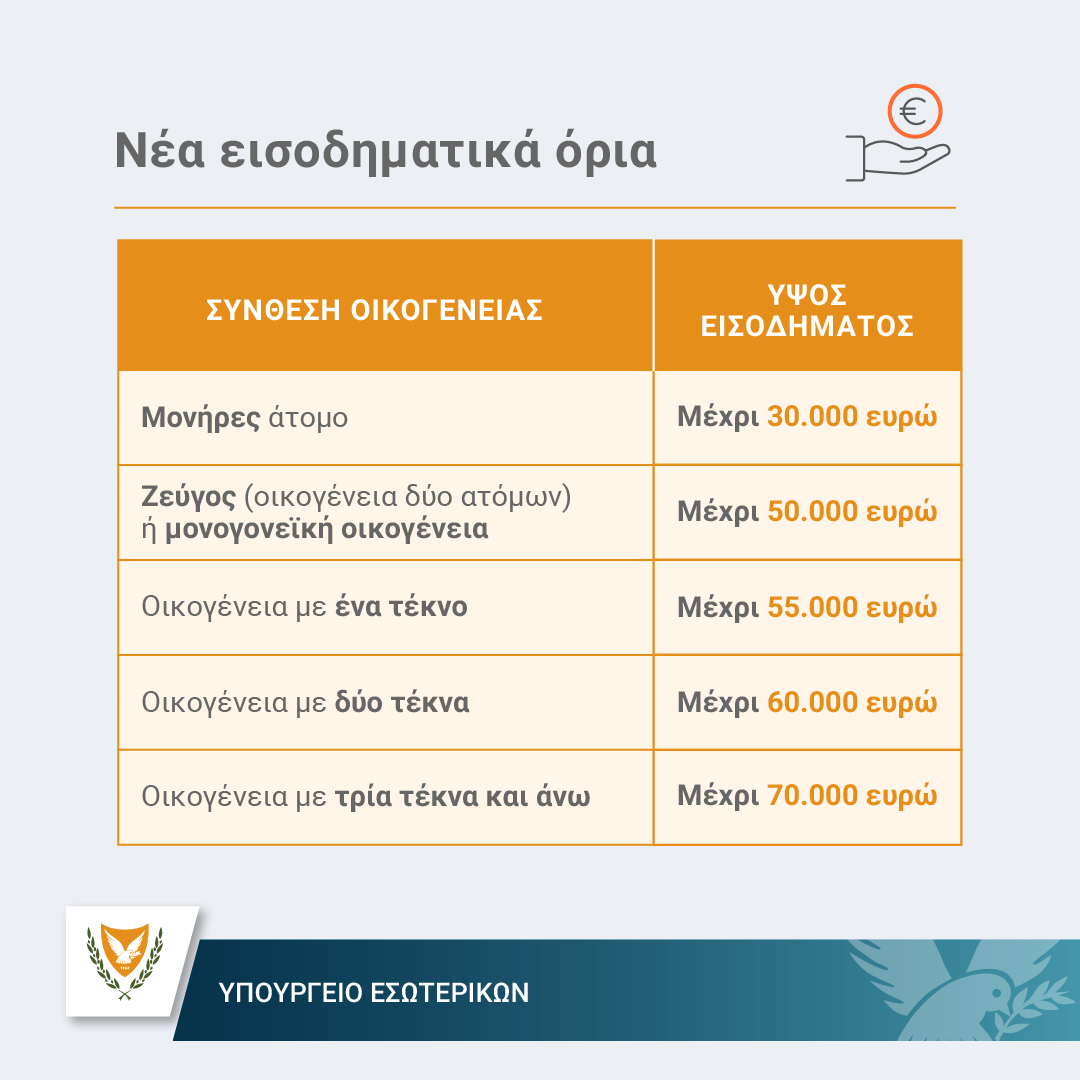 - Τροποποίηση κριτηρίου, ούτως ώστε στις περιπτώσεις που υπήρξε αποξένωση οικιστικής μονάδας η οποία δεν καλύπτει τις σημερινές ανάγκες της οικογένειας να εγκρίνεται η αίτηση για το ποσό που ισχύει για μονήρες άτομο (μέχρι €20.000).