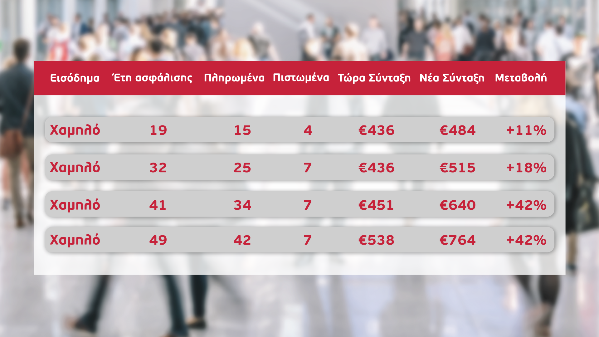 Οι αριθμοί αυτοί, υπολογίσθηκαν δεδομένου ότι ο εργαζόμενος συνεισέφερε στο ΤΚΑ για 32 έτη.