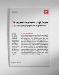 Σε μια Κύπρο όπου οι ευκαιρίες είναι λίγες, η νοοτροπία συγκεκριμένη και οι περισσότεροι περιμένουν να ακολουθήσεις τον συνηθισμένο δρόμο, πολλές φορές η πορεία ενός νέου επιχειρηματία ίσως να μοιάζει μοναχική. Στην πραγματικότητα όμως, αυτή η μοναξιά είναι που χτίζει χαρακτήρα, αντοχή και αυτοπεποίθηση: τα πιο σημαντικά θεμέλια για όσα ακολουθούν.