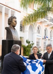 Με αφορμή τη συμπλήρωση 100 χρόνων από τη γέννηση του παγκοσμίου φήμης συνθέτη Μίκη Θεοδωράκη, το Κοινωφελές, Επιστημονικό και Πολιτιστικό Ίδρυμα «Φώτος Φωτιάδης» δώρισε προτομή του μεγάλου δημιουργού στο Δήμο Αργοστολίου. Τα αποκαλυπτήρια πραγματοποιήθηκαν στην κεντρική πλατεία της οδού Ριζοσπαστών, απέναντι από τη Φιλαρμονική Σχολή Κεφαλληνίας.