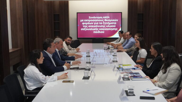 Κατά τη διάρκεια της συνάντησης, επισημάνθηκε επίσης η ανάγκη για ουσιαστική ενημέρωση γονιών και παιδιών για τους κινδύνους που κρύβονται πίσω από τις οθόνες, αλλά και για ενίσχυση των δράσεων πρόληψης και στήριξης των θυμάτων.