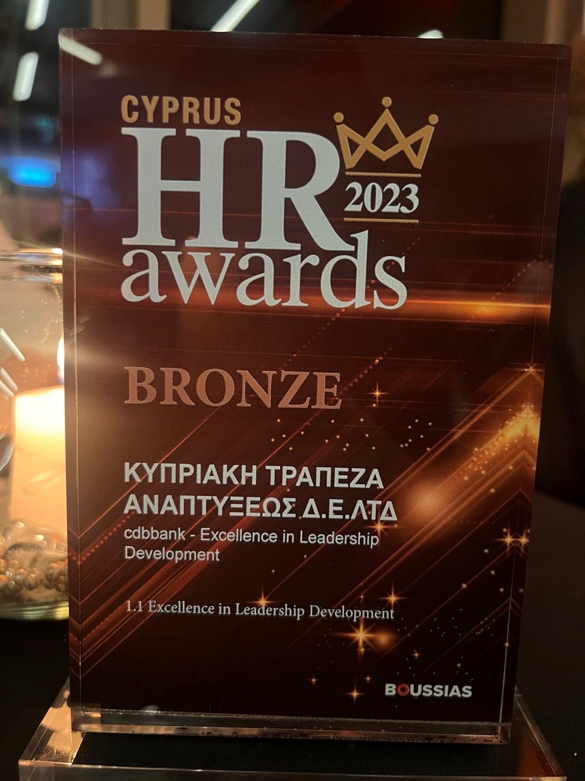 Πιο συγκεκριμένα, η cdbbank, που μετρά ήδη 60 χρόνια πρωταγωνιστικής παρουσίας στην εταιρική τραπεζική της Κύπρου, έλαβε το χάλκινο βραβείο στην κατηγορία Excellence in Leadership Development για το καινοτόμο πρόγραμμα ηγεσίας που διοργάνωσε κατά την περασμένη χρονιά.